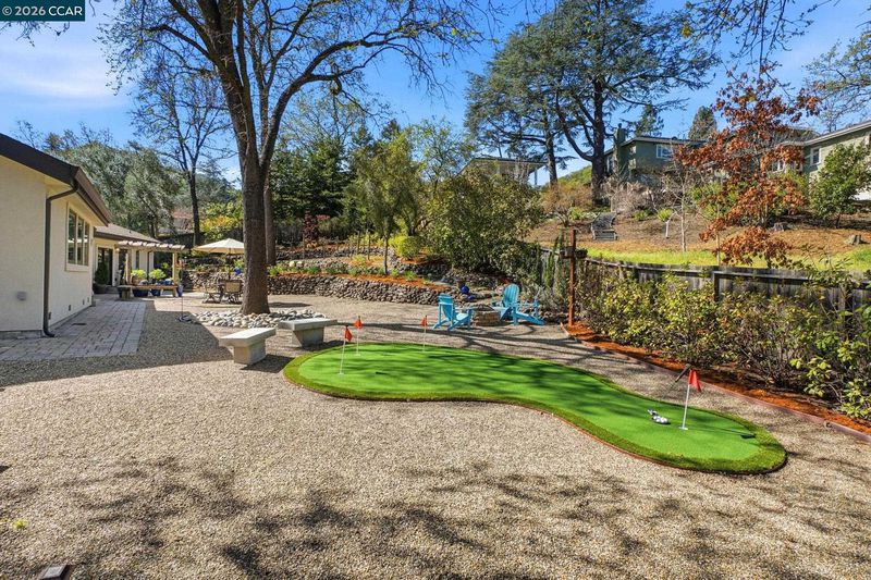 Remodeled Westside Alamo single story executive home completed with permits in 2022; fully fenced & gated, located on a private street of only 3 homes. The front porch entry invites you in to a vaulted living space drawing you through to the 1/2 acre parklike setting overhung with it's canopy of mature Oak trees. The high vaulted ceiling of this gorgeous custom chefs’ kitchen showcases both painted and natural wood custom cabinets with quartz and quartzite counters, featuring stainless steel Thermador appliances; microwave/oven, fridge/freezer, 2 dishwashers, 8 burner gas stove-top, wine fridge, walk-in pantry, and built-in kitchen nook compliments the oversized center island. The 5 bedroom home has 2 ensuite primary bedrooms, the main primary bedroom with French-door access to a cobbled patio has a custom built-in closet; a spa like bathroom with soaker tub, dual sinks, rift oak cabinetry and a spacious shower stall. Mature Oaks & Olive trees create the relaxing setting surrounded by low maintenance hardscapes, vines and winding pathways, a pavilion, a 4 hole putting green & firepit. (Previously approved 3rd garage and 650sf +/- ADU plans for side yard included.)