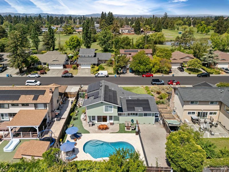 Welcome to your private resort in the heart of Rohnert Park's highly sought-after D Section. This beautifully upgraded 4 bedroom, 3 bathroom home offers approximately 2,224 square feet of stylish living space on a generous 8,424 square foot lot, blending modern comfort with an incredible backyard retreat designed for relaxation and entertaining. Inside, the home showcases, recessed lighting throughout, stylish wood-trimmed windows, and recently installed plush white carpeting that creates a warm and inviting atmosphere. The thoughtfully remodeled kitchen features quartz countertops, stainless steel appliances, a decorative tile backsplash, upgraded sink, and custom faucet, offering both functionality and modern style. The luxurious primary suite offers a true spa-inspired experience with a fully remodeled bathroom featuring designer tile, custom glass shower doors, triple shower heads including a waterfall fixture, polished gold accents, tile flooring, coordinated hardware and fixtures, and a Bluetooth-enabled exhaust fan with ambient sound and mood lighting. Recent system upgrades include seller-owned solar, a recently replaced furnace and central air conditioning system, upgraded ducting, a whole-home air scrubber, and a replaced water heater providing improved comfort, efficiency, and peace of mind. Step outside into your private backyard oasis where the sparkling pool has been beautifully renovated with new decking, resurfaced finishes, and an elegant waterfall feature wall. Replaced fencing, RV gate and parking, and an incredible collection of fruit trees and berries including peach, lime, blood orange, lemon, Honeycrisp apple, red delicious apple, avocado, figs, blueberries, strawberries, and raspberries. Ideally located near Foxtail Golf Course, Sonoma State University, parks, shopping, dining, and Graton Resort & Casino, with convenient access to Highway 101 and approximately 20 minutes to historic downtown Petaluma. Offering thoughtful upgrades, resort-style amenities, and a prime location, this home delivers the best of Sonoma County living.