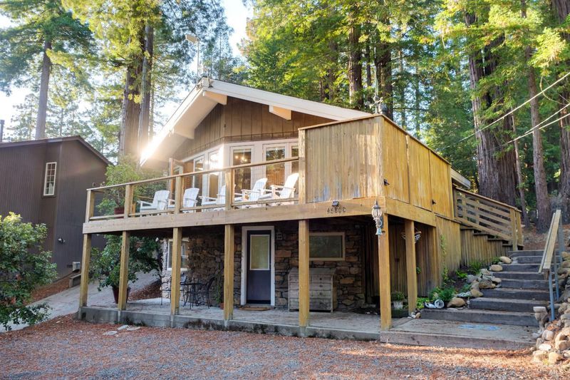 Your Beach House awaits! In a delightful coastal neighborhood, just above Anchor Bay Village, with deeded beach access to nearby Anchor Bay Beach. Walk to the local grocery store, Thai Restaurant, coffee shop or yoga studio, or continue down the path to the beach. Magical redwoods surround the home, which also gets good sun, even some space for gardening. Enjoy tranquil ocean views through the trees, and gorgeous sunsets every evening. In the living space...beautiful french doors frame the views at the living room and kitchen, opening out to the south facing front deck with a private hot tub, BBQ and outdoor seating. The remodeled kitchen features a beautiful island dining bar with Granite countertops, Oak cabinets and upgraded appliances. A propane fireplace keeps the living spaces warm and cozy, and there is also in-floor heating on the main level, added in 2019. The main living space features two main bedrooms and a full bath. A lower level guest room/studio, remodeled in 2014-2015, has a separate entrance, built-in Murphy bed, storage, tiled floors and a full bath with jetted tub/shower and stacked washer/dryer. New roof in 2013. This home is served by public water, sewer, propane, and high-speed internet. Located in the heart of the Banana Belt, this little neighborhood gets the best weather in town! Great for part-time, full-time or vacation rental. Sold furnished and ready to go for your coastal adventures!