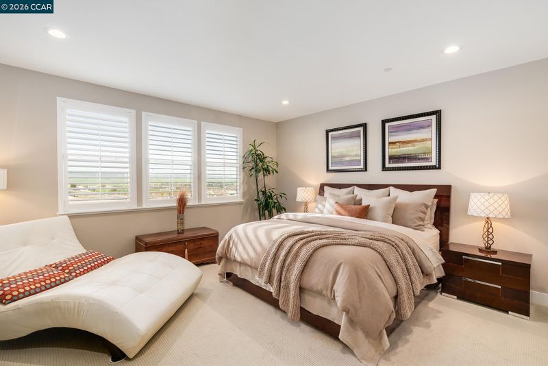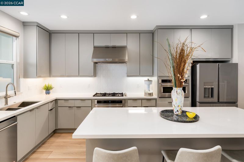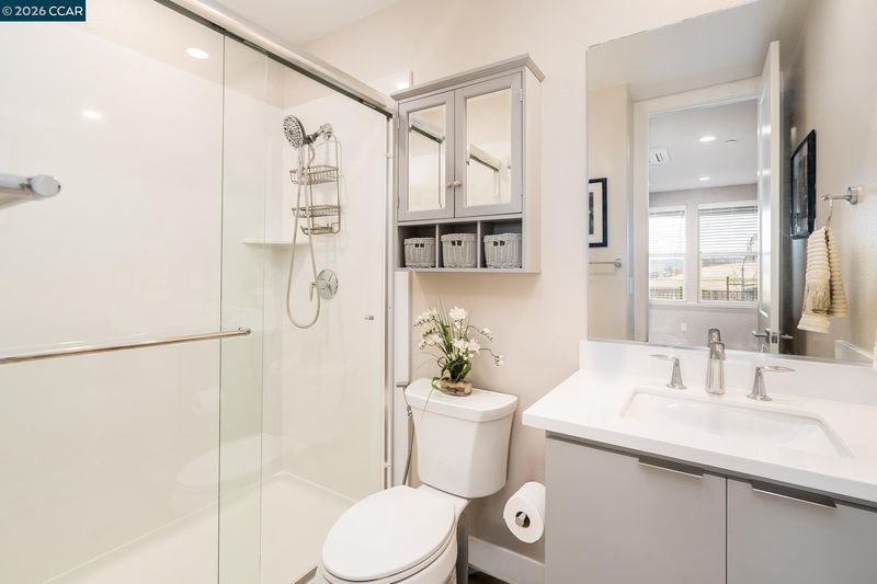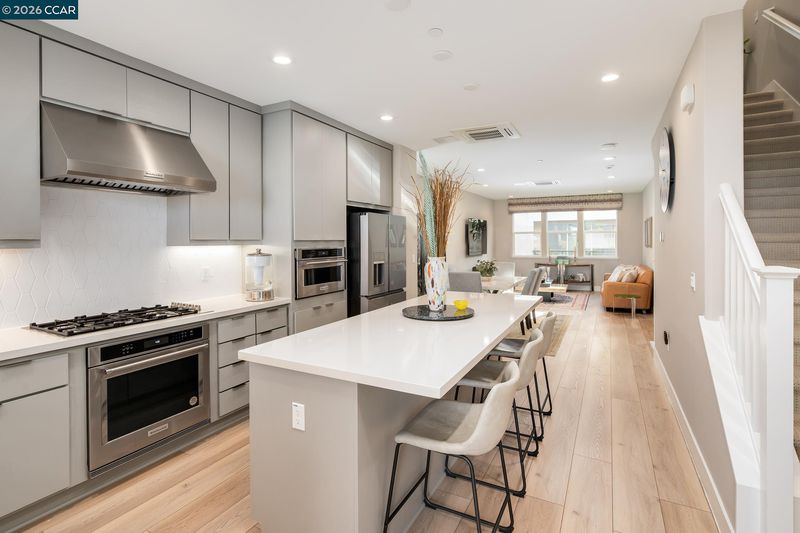 Welcome to this beautifully appointed, meticulously maintained three-level condo in The Preserve at San Ramon, offering 3 beds, 3.5 baths and approx. 1,837 sq ft with gorgeous hillside views. The bright open-concept main living level features wide-plank flooring, abundant natural light, Hunter Douglas window coverings with custom cornices by Danville Interiors, and designer wallpaper accents. The spacious living and dining areas flow into a modern chef’s kitchen with MonSchien custom cabinetry, quartz countertops, premium KitchenAid stainless steel appliances, Café refrigerator, gas cooktop, walk-in pantry, and large center island with bar seating. A private first-floor bedroom suite with Murphy bed offers ideal flexibility for guests, extended family, or home office. The primary suite includes a custom California Closet system. Additional features include upstairs laundry with washer & dryer, owned solar, Brinks security system with cameras, epoxy garage flooring, and SafeRacks overhead storage. Enjoy beautiful hillside and open space views in the highly desirable Preserve community, close to parks, trails, top-rated San Ramon schools, shopping & dining, Bishop Ranch, and major commuter routes, I-680.