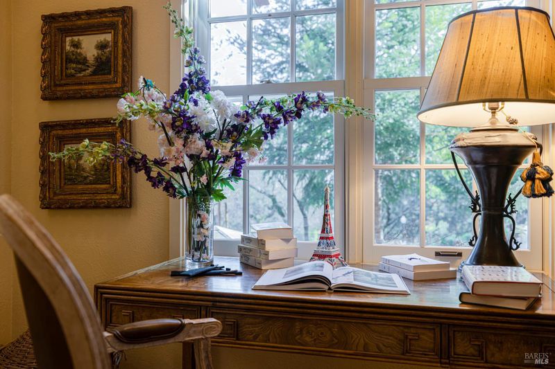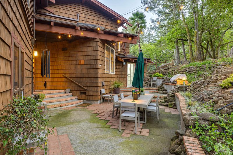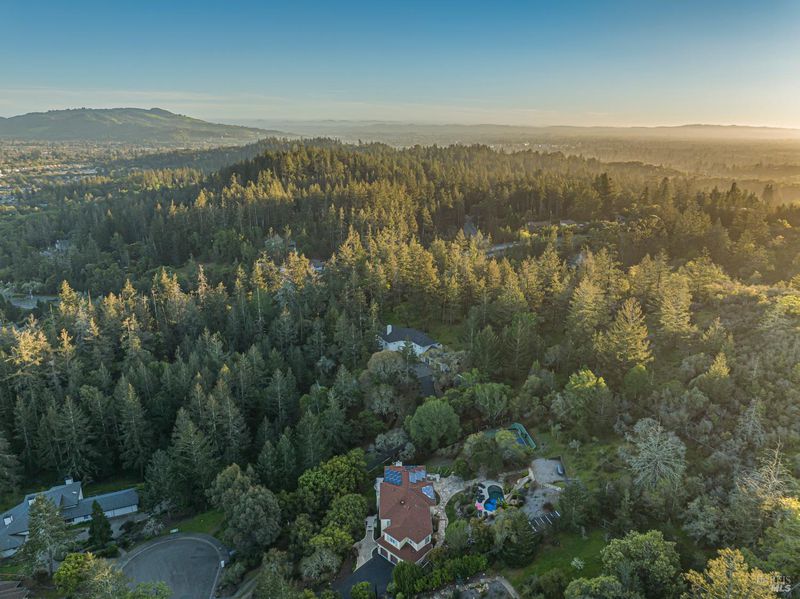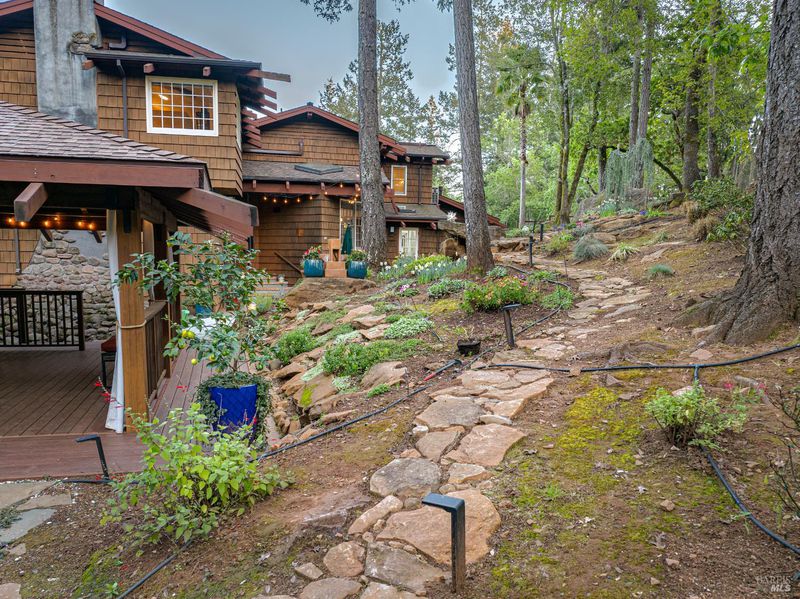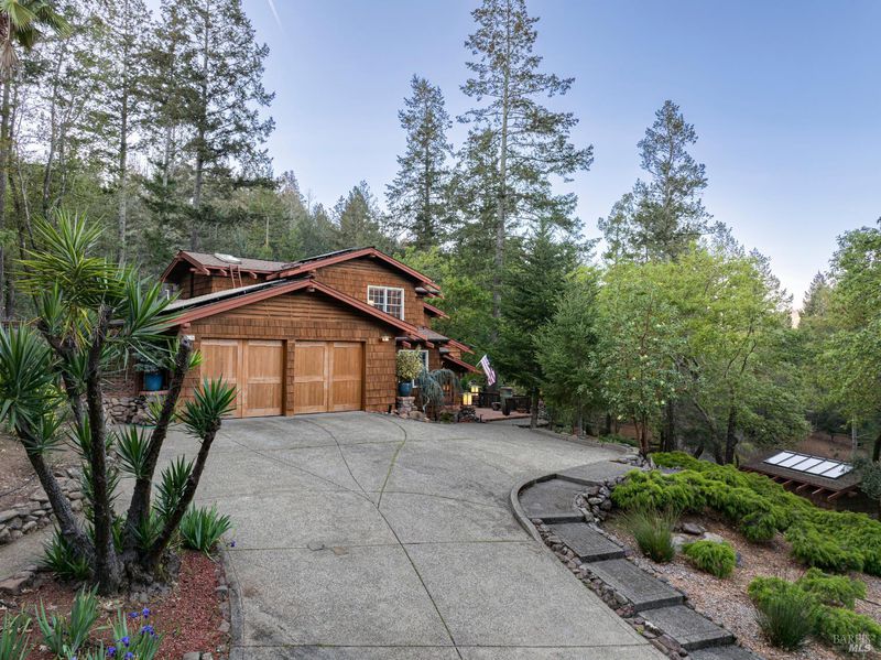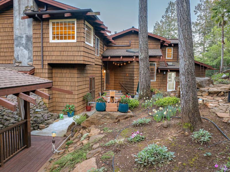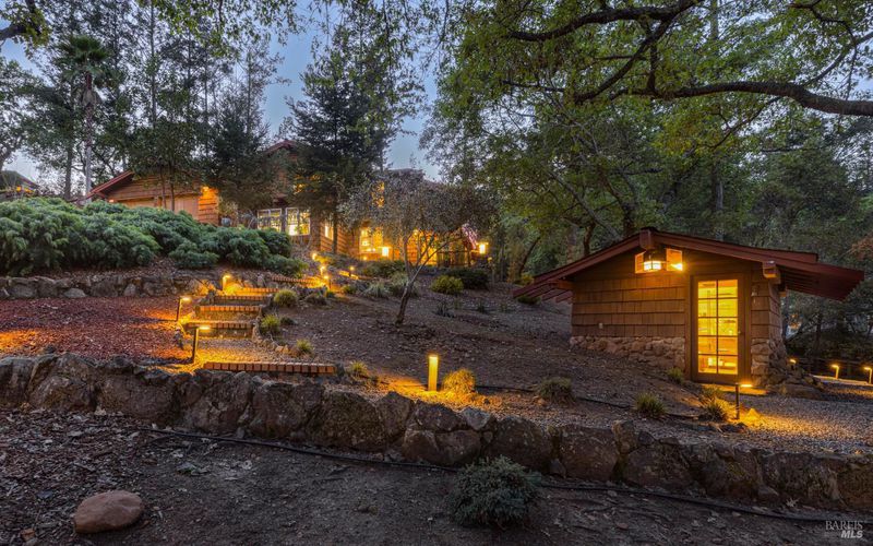 Welcome home to 5779 Trailwood Drive, nestled in Brush Creek's Woodside Hills neighborhood! This timeless masterpiece is architecturally captivating and flooded w/natural light. The artful interior is wrapped in peaceful surroundings. Originally designed and built by a locally recognized architect, this home exudes quality craftsmanship and handsome woodwork w/custom themes throughout. Showcasing 3 bedrooms, 3 full bathrooms and 3,410 sq ft of living space w/separate office cottage, this stunning home includes a renovated laundry room w/storage, high-end appliances, newer A/C, heating and an owned solar system. Designed for entertaining, the inviting floor plan features a formal entry w/tile floor inlays that complement hardwood floors. Adjacent is located a study/library room. Entering the undeniably beautiful, renovated kitchen, gourmet chefs can take advantage of high-end appliances (Thermador 6-burner gas cooktop w/stunning Italian Bertazzoni hood) custom cabinets w/soft pulls, two upper cabinets featuring glass w/copper inlays, wine cooler and Quartz counters. The large island w/storage drawers are flanked by custom wood columns w/bar seating. Oversized windows above the sink feature pendant lighting w/picturesque views of the forest-like backyard. Complementing this impressive contemporary design, a wood-burning HearthStone stove is seated atop brick tile floors. Adjacent to the kitchen is a large living area for enjoying your favorite TV/movies, featuring built-in cabinets and designed to bring the outdoors in. The gorgeous extra spacious sunken living room features a large tile-surround fireplace. Concrete flooring, beautiful accent tiles and built-in cabinets lend a sense of elegance and comfort. Large French doors in the living room open to a railed balcony while on the opposite side additional French doors give direct access to the back patio/garden area. The mature and meticulously maintained landscaping features irrigation, citrus trees, deer fences, stone/slate walkways w/lighting and a fountain. Beyond the patio/garden is a 20' by 20' pergola w/an oversized newer hot tub. Enjoy outdoor entertainment in the tranquil park-like setting of the magical experience offered by this once-in-a-lifetime legacy property. This artfully crafted home is conveniently located near Oliver's Market, Montgomery Village shopping mall, parks and schools. Enjoy the relaxing lifestyle and natural beauty that a stunning Sonoma County wine country residence provides!
