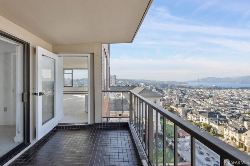 Welcome to this northwest corner residence at The Panorama, this expansive home offers truly breathtaking, unobstructed views of the Bay and Golden Gate Bridge from nearly every room. Floor-to-ceiling windows frame iconic vistas of Alcatraz, the Palace of Fine Arts, Coit Tower, the Transamerica Pyramid, and the San Francisco skyline. The thoughtfully designed layout features two generous bedrooms, each with a walk-in closet, a large den/library ideal for a home office, a formal dining room, and a dedicated in-unit laundry room. The spacious living room is enhanced by a fireplace and opens to a private walkout terrace, perfect for enjoying the spectacular views. The kitchen is appointed with granite countertops and ample cabinetry, while wood flooring enriches the main living areas and plush brand-new carpeting adds comfort to the bedrooms. Large, beautifully tiled bathrooms complete the home with a refined, spa-like feel. Direct elevator access into the residence enhances privacy and convenience, while a balcony, one parking space with adjacent storage, and abundant built-ins complete the home. Residents of The Panorama at 2190 Broadway enjoy a 24-hour attended lobby, professional management, elevators that open directly into residences, and a fully equipped fitness center. Ideally located at the crest of Pacific Heights, just steps away from top schools and the vibrant dining, shopping, and cafes of Fillmore and Union Streets. The property is in original condition and offers tremendous potential to create a custom residence around its world-class views.