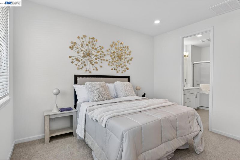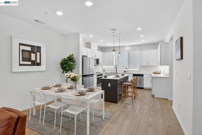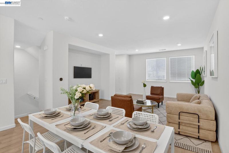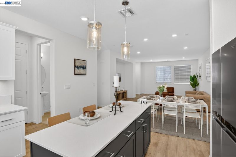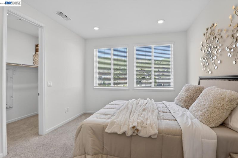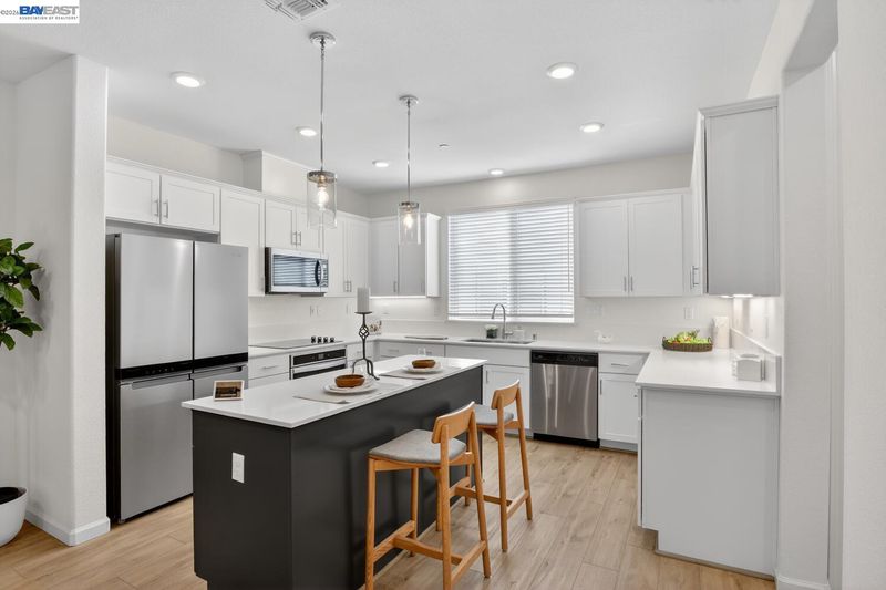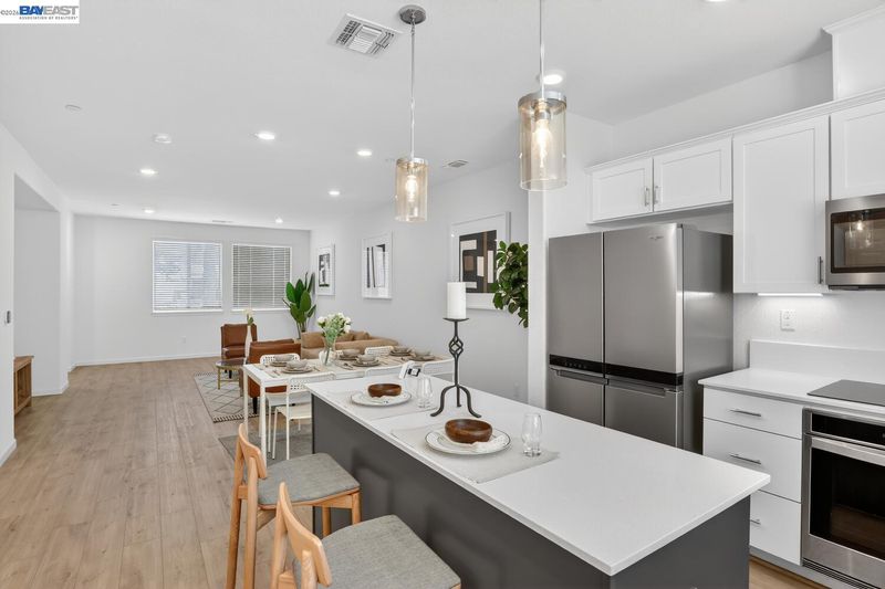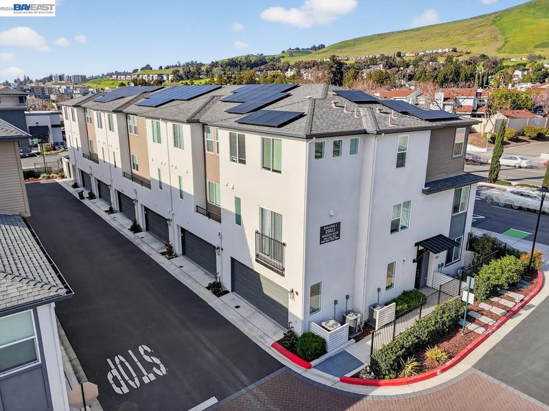 Bright, comfortable living meets thoughtful upgrades in this well-located townhome. The large, functional kitchen is designed for everyday ease and entertaining alike, featuring beautiful quartz countertops, a convenient center island, generous pantry space, and abundant storage. Soft-close drawers and cabinets, under-cabinet lighting, and pull-out drawers in all lower cabinets, maximize accessibility and organization. The home offers bright and inviting spaces throughout, complemented by a spacious laundry room and four walk-in closets for the 3 bedrooms and bonus room (possible 4th bedroom). Enjoy efficient comfort with separate climate control on each level using an Ecobee Smart Thermostat system with convenient remote access via app. Over $58k in builder upgrades were added including recessed lighting throughout, LVP floors, Hunter Douglas shades, EV prewire and owned 10-panel solar system. Mission Hills Golf and driving range, Garin Regional Park and the East Bay Regional Park District park system are just a few minutes away while nearby bike lanes add to the home’s active lifestyle appeal. Enjoy everyday convenience with Starbucks located at the corner and a community picnic and BBQ area. Commuters will appreciate easy access to major freeways, bridges, and BART.