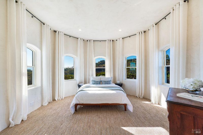 Le Mirador - Where the ridge meets the sky, this Mediterranean-inspired estate rises above Napa Valley with panoramic views reaching across vineyards and mountains to San Francisco Bay, Mount Tamalpais, and the Golden Gate towers. Just minutes from Silverado Country Club and downtown Napa, it offers both seclusion and convenience. Behind a private gate, 10 acres of terraced gardens, ancient olive trees, and vineyard create an atmosphere of serenity. Reimagined between 2021 and 2025, the 7,500 sq. ft. residence blends grandeur with intimacy. Cathedral ceilings, walls of glass, and natural light define interiors, while verandas and landscaped spaces capture Napa's indoor-outdoor living. Four en-suite bedrooms, a large den, two wine tasting rooms, and generous gathering areas welcome retreats or large-scale entertaining. The grounds feature a 2-acre Cabernet Franc vineyard, a pond with 90-foot waterfall, cliffside paths, a Hestan outdoor kitchen, fire pit, hot tub, putting green, golf tee, solar power, and dual garages. This is a property that must be experienced. Its scale, privacy, and natural beauty create an estate that feels at once grounded in Napa's vineyard tradition and elevated far above it an incomparable retreat just minutes from the heart of the Valley.