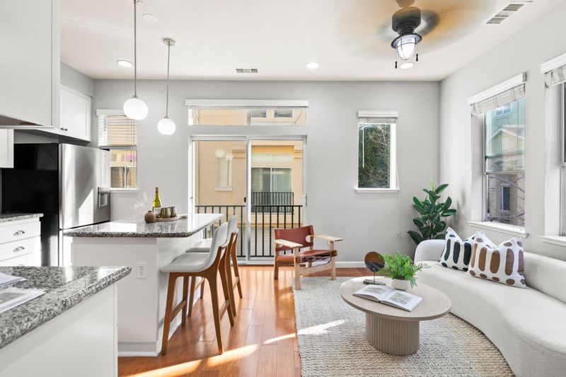 Move-in ready! Fabulous 3-bed, 2.5-bath end-unit townhome in the desirable Whisman Station neighborhood of Mountain View. The open-concept living area features soaring ceilings, beautiful hardwood flooring, a cozy fireplace, and large windows that fill the home with abundant natural light. The modern kitchen boasts granite countertops, newly refreshed cabinetry, stainless steel appliances, and a breakfast island for casual dining.The generous primary suite offers a walk-in closet and an en-suite bath with dual sinks. Additional highlights include central A/C, a private balcony, and a two-car garage.Enjoy the well-maintained community with greenbelts, playground, pool and spa, BBQ area, and clubhouse, all with a low HOA fee. Conveniently located near Pyramid Park, shopping, dining, major tech campuses, and with easy access to Hwy 101, 237, 85, Caltrain, and VTA.