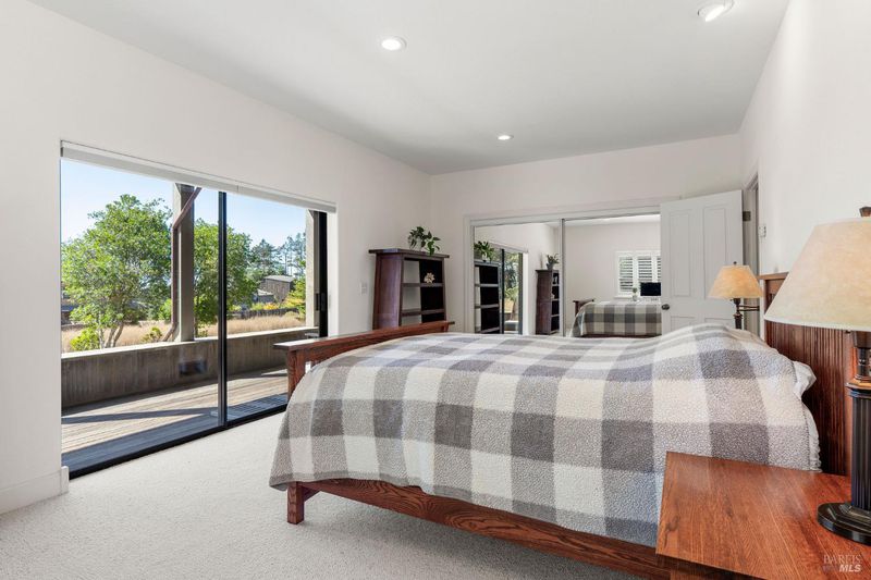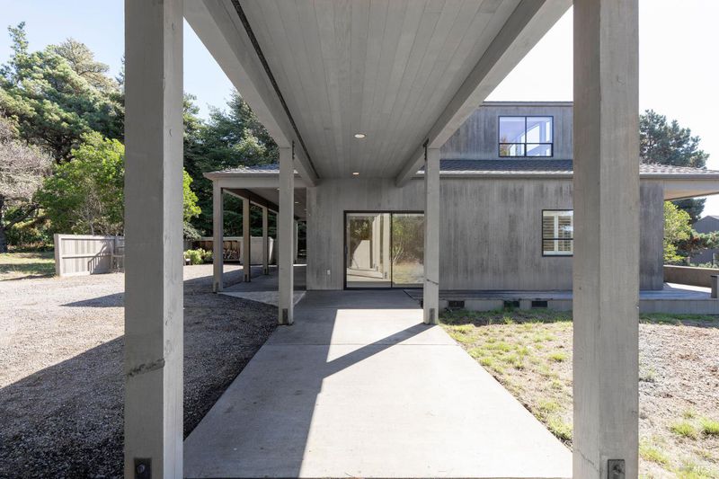 Derived from the rugged beauty presented by The Sea Ranch hillside, this two-bedroom, two-and-a-half-bathroom residence is thoughtfully designed to showcase sweeping Pacific Ocean views through a modern interpretation of classic farmhouse architecture. Featuring a contemporary reverse floor plan, the elevated second story offers an open-concept living, dining, and entertaining space beneath a striking wine-barrel ceilingcreating a warm, welcoming ambiance framed by the ever-changing landscape of Northern Sonoma's coastal skyline. With its proximity to world-class hiking trails and dense redwood forests, this home truly offers the wonders of nature at your very fingertips. Purposefully envisioned for its hillside setting, the home features a covered deck and walkway leading to a two-car garage, offering protection from the coastal elements. With two en-suite bedrooms located on the lower level, the floor plan ensures a balance of private retreat and everyday livability. Expansive sliding glass doors offer separate entrances and foster a seamless connection to the surrounding natural environment.