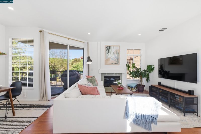 A quiet end-unit condo located in the desirable Torrey Pines community. This 2-bedroom, 2-bath home offers approximately 960 square feet of thoughtfully designed living space. The open-concept layout is filled with natural light and features a cozy fireplace and a private balcony. The updated kitchen includes modern countertops and backsplash, stainless steel appliances, well-maintained cabinetry, and recessed lighting. The primary suite features vaulted ceilings, a skylight that brings in natural light, and an updated vanity area. Additional highlights include interior storage and designated parking. Residents enjoy community amenities such as a pool and spa. Ideally located with convenient access to walking trails throughout the Windemere and Alamo Creek areas, as well as nearby shopping and dining. Commuters will appreciate the close proximity to BART and the 580/680 corridor.
