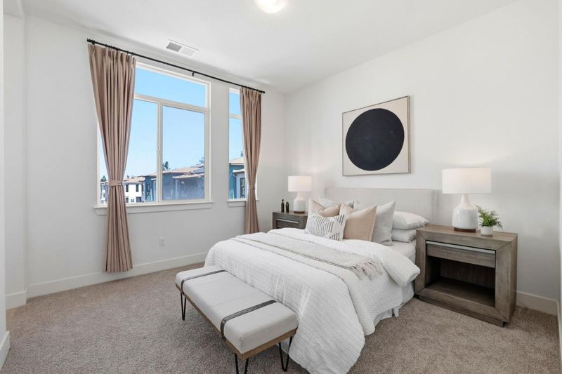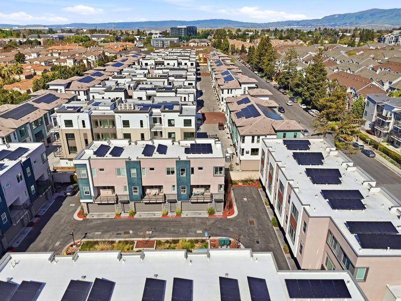 Built in 2022, this desirable corner-unit home with a private yard offers a rare blend of modern comfort, energy efficiency, and prime Silicon Valley convenience. This beautifully designed residence features soaring ceilings, abundant natural light, and an open-concept floor plan ideal for both everyday living and entertaining. A standout feature is the exceptionally spacious primary suite, offering a true retreat with ample room to relax and unwind. Thoughtfully constructed with premium sound insulation for enhanced privacy, the home delivers a peaceful and refined living experience. Solar power helps keep electricity costs low, while HOA dues include water, trash, pest control, and annual window cleaning for added ease and value. Enjoy inviting outdoor spaces including a welcoming front patio and a versatile private yard, all just a short walk to Seven Seas Park. Ideally located with effortless access to Highways 101, 85, and 237, and just minutes from major tech campuses such as Google, Meta, and NVIDIA, this home offers luxury, convenience, and lifestyle in one exceptional package.