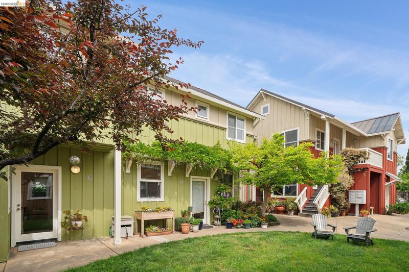 Discover enchanting and modern living at 480 42nd St. Through the gate and blooming bougainvillea, a winding path leads you past verdant community gardens on your way to Unit E. This intentional community of just six homes fosters connections through shared outdoor spaces designed for gatherings. Built in 2000, Unit E is a townhouse-style condo that seamlessly blends contemporary farm-style with comfort. High ceilings, recessed lighting, and stylish finished concrete floors equipped with radiant heating, new wool carpet up the stairs, and bamboo flr in the bdrms. On the 1st floor, the bright, eat-in kitchen is perfect for meals and homework alike. The space creates a peaceful oasis to relax after a long day. There is a half-bath on the ground floor btw the kitchen and the living room. Upstairs, you will find a primary suite with dual closets, high ceilings, and plenty of natural light. Two additional bedrooms and a full bath provide space for family or guests. A pull-down ladder reveals a generous attic space, inviting your expansion dreams*, or just an easy place to store your stuff. In this sunny garden oasis, it’s hard to believe you are just one block from the vibrant Temescal restaurant scene on Telegraph. Truly an urban oasis! *(Buyer to investigate)