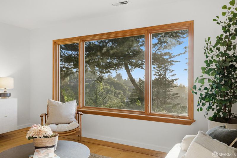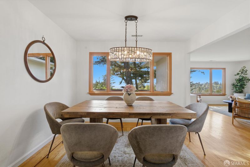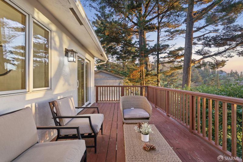 View, view, view!!! Mid-century modern charm meets serene Oakland Hills living in affluent Piedmont Pines neighborhood. This 5-bedroom, 3.5-bathroom home offers a huge ~2800-sqft living space on a 7,150 sqft lot with tasteful updates. Enter on the main level into a stunning living-dining room combo framed by expansive wood-framed picture windows with tranquil views of towering pines and Bay and San Francisco vistas. The eat-in kitchen has been thoughtfully updated while maintaining mid-century character, and it opens to a lovely deck perfect for morning coffee, bird-watching, and al fresco sunset dinners. A bright family room features a sculpted rock wood-burning fireplace. The upper level also includes a large two-car garage, office, and a stylish half bath. Downstairs, the primary suite enjoys its own private deck, with four additional bedrooms, a laundry place, and generous basement storage. Steps way from Skyline Gate and the East Ridge Trail, this is a rare opportunity to own in a peaceful, nature-rich neighborhood. Minutes from Montclair Village and Hwy 13. Your dream home awaits!