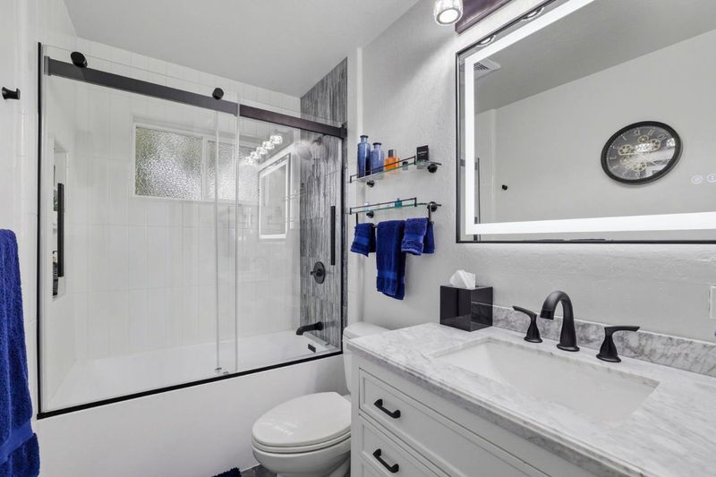 Beautifully maintained 3 bed, 2 bath home in desirable Saratoga, plus a fully equipped studio suite with private entry that includes an extra bedroom, bamboo floors, walk-in closet, stunning bathroom with walk-in shower, and a kitchen equipped with an island and everything you would need. Located on a quiet street, this home offers great curb appeal with fresh paint, manicured landscaping, and a welcoming entry. Inside, hardwood floors run throughout, and the kitchen, updated less than a year ago, features new appliances, quartz counters, glass subway tile backsplash, and modern finishes. The primary bath is light and bright with stone floors and a walk-in shower with glass barn door, while the hall bath boasts a soaking tub and glass surround. The amazing backyard offers multiple entertaining areas, grassy space, fountain, large side yard, two sheds, and fruit trees including lemon, apple, orange, cherry, apricot, and nectarine. Prime location with easy access to Hwy 85.