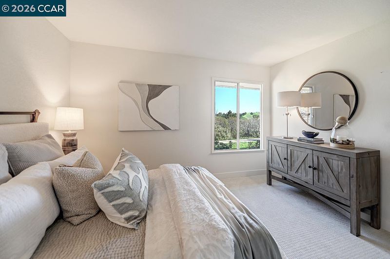 Highly sought-after level in Santa Cruz model, ideally situated in a lawn setting with lovely outlook of the eastern hills, including beautiful twilight views. A spacious, sun-drenched tiled patio with a garden bed invites outdoor enjoyment. Step inside to a fresh and light-filled living space with open adjacent den. The kitchen features quartz countertops, all new stainless steel appliances, stove fan, sink & faucet. Freshly painted throughout in Benjamin Moore’s elegant “Soft Chamois,” the home is filled with natural light and features smooth-finish ceilings for a clean, contemporary feel. New luxury plank flooring in “Dynamic Beige” flows seamlessly through the main living areas, while the two bedrooms are finished with plush, upgraded “Caspian” carpeting. New side by side washer/dryer. Attractive new hardware and fixtures complete the polished look of this exceptional property. Accessibility is a breeze with a user-friendly ramp (with railing) that leads to the nearby carport building, which includes a storage closet. Plentiful guest parking nearby. MUST SEE!