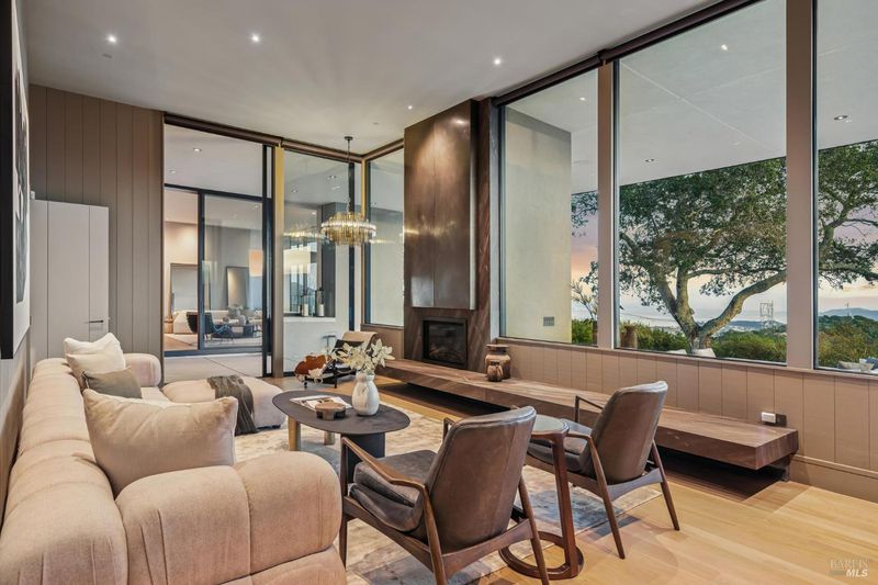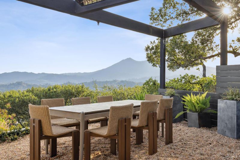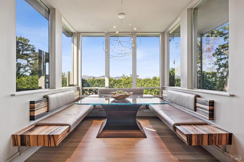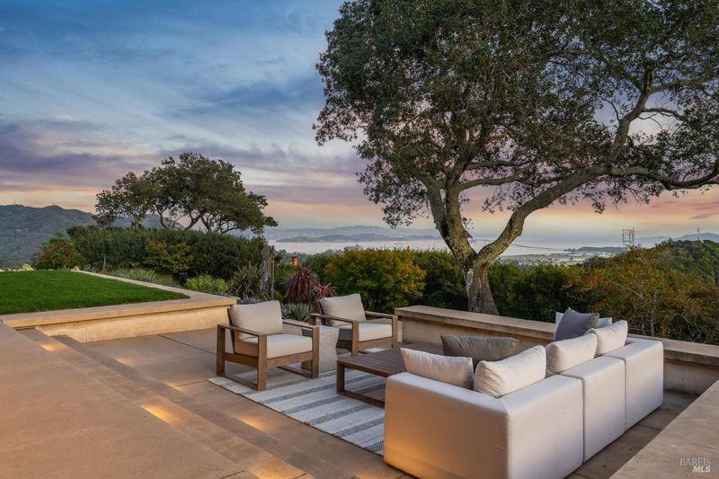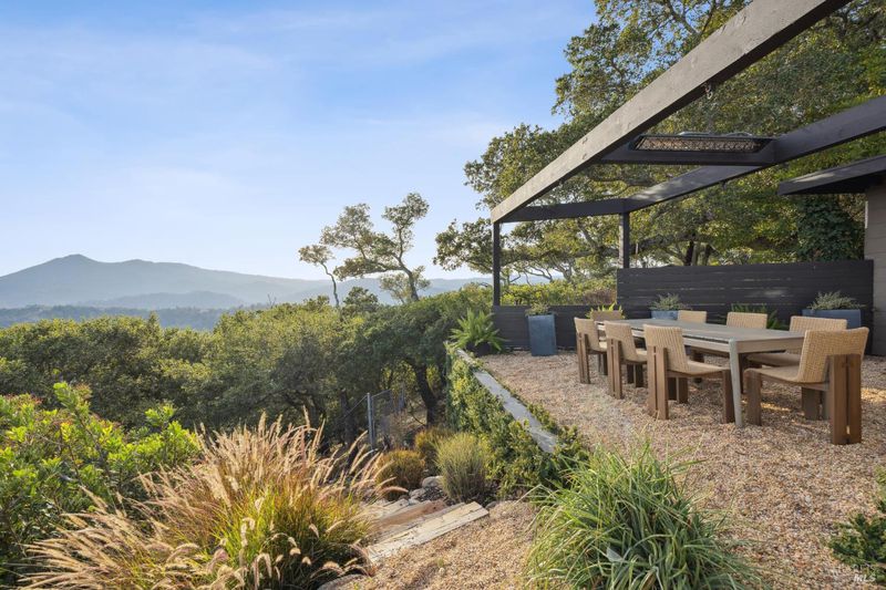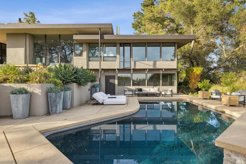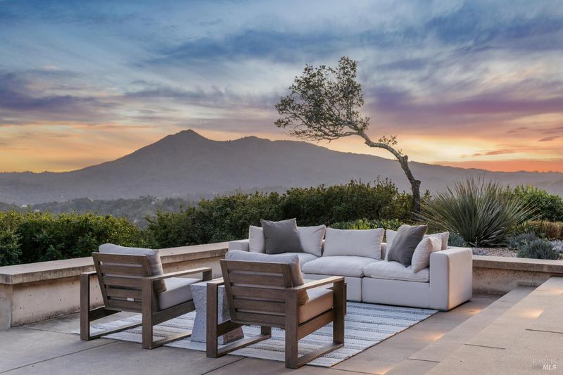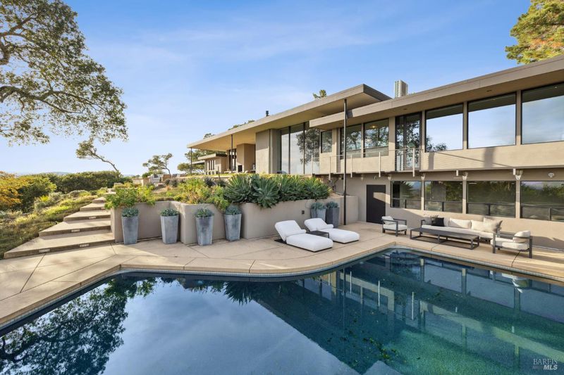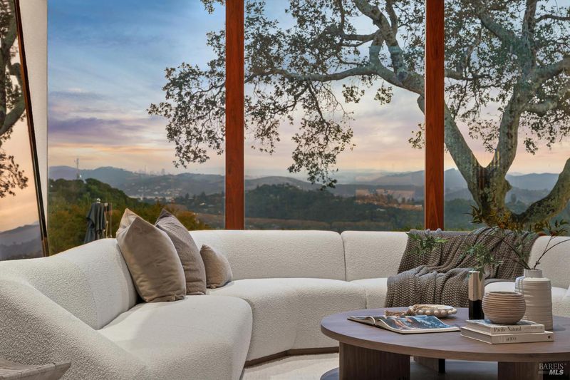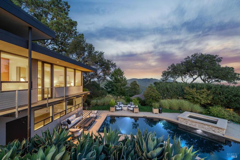 87 Oakmont sits at the top of a hill on one of the most special parcels in all of Central and Southern Marin. The home has gone through a full custom renovation, rebuilt with long-term quality in mind and materials that would be hard to recreate today. Set in Marin County's best microclimate, the property is surrounded by nearly 360 views of Mt. Tam, the San Francisco skyline, the bay, and two bridges. Most of the living space is on one level with 12' ceilings and an easy indoor/outdoor flow through floor-to-ceiling Blomberg windows. The great room opens to patios that wrap the home, offering more than 2,000 square feet of outdoor space for gatherings, quiet weekends, and everyday living. The kitchen was redesigned with custom cabinetry, a Heath tile backsplash, and insert-style appliances. You will see the attention to detail in the custom walnut shoji-inspired screens, leather-clad Poliform closet doors, thoughtful lighting, and custom cabinetry throughout. Each space was designed to be simple, functional, and long-lasting. The primary suite sits in its own corner of the home with views, natural light, and a calm feel. A separate space off the pool works well for workouts, guests, or a studio. The property is just under an acre with low-maintenance landscaping, a private driveway, and a three-car garage. A new roof and system upgrades make the home easy to move into and enjoy from day one. 87 Oakmont brings together mid-century lines, custom renovation, and a layout that fits entertaining, relaxed living, and time spent at home.