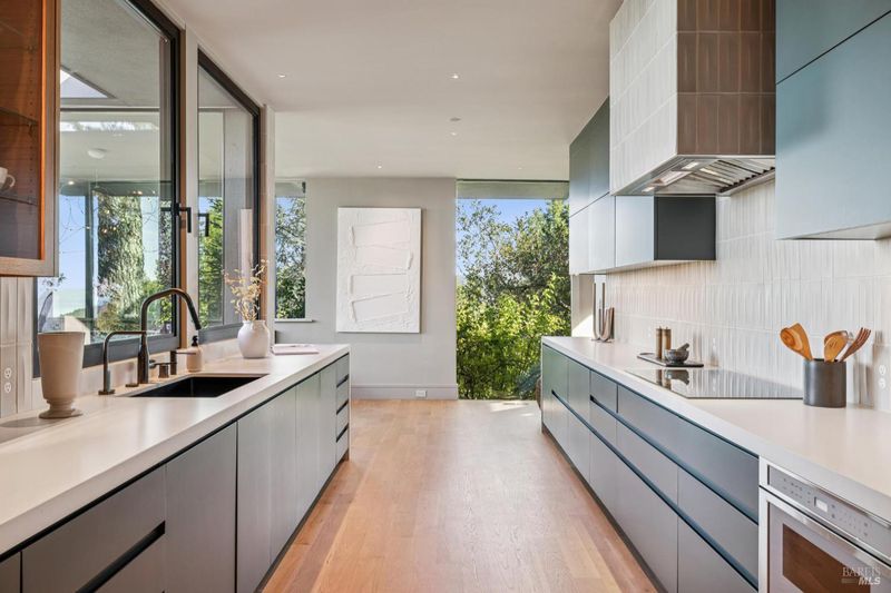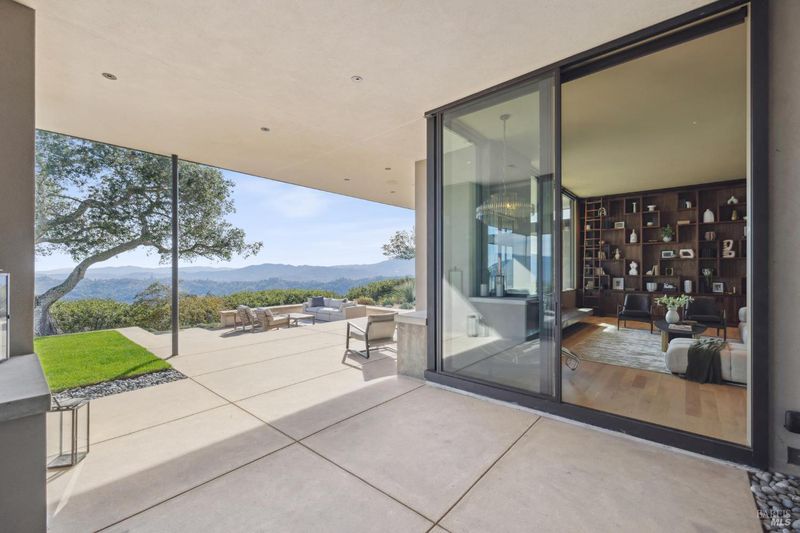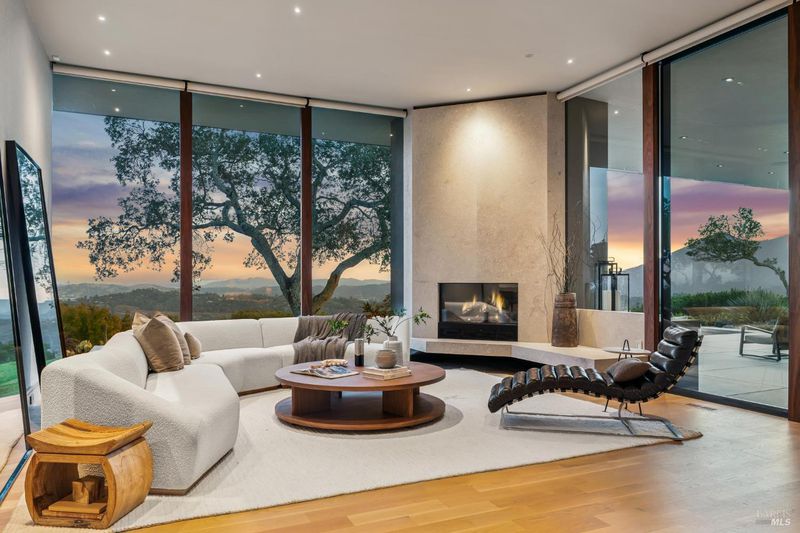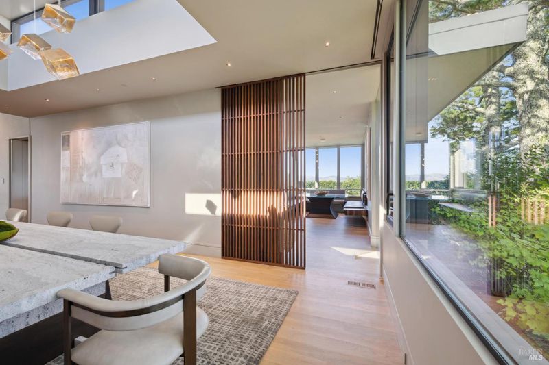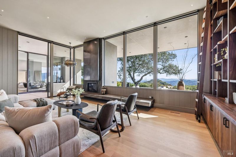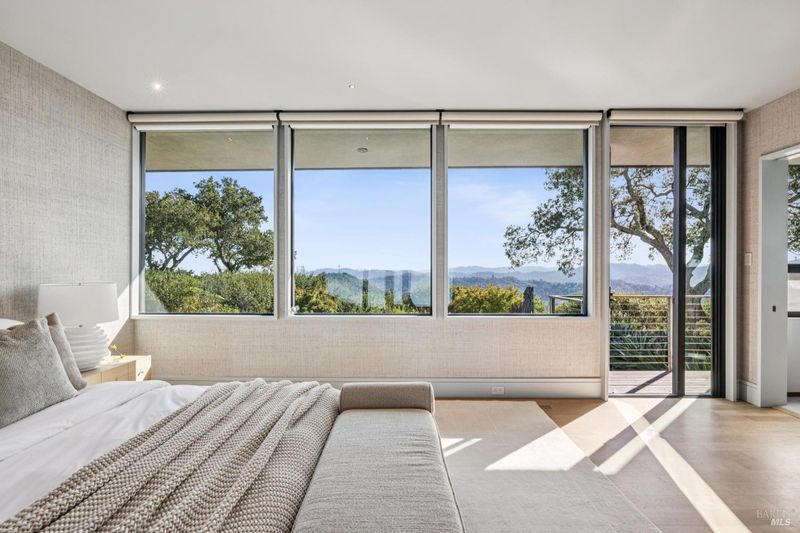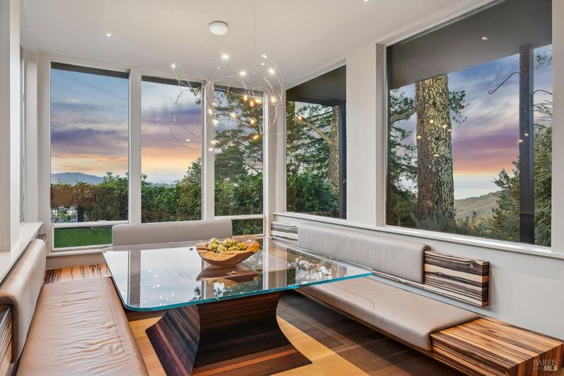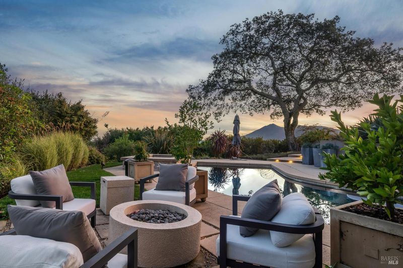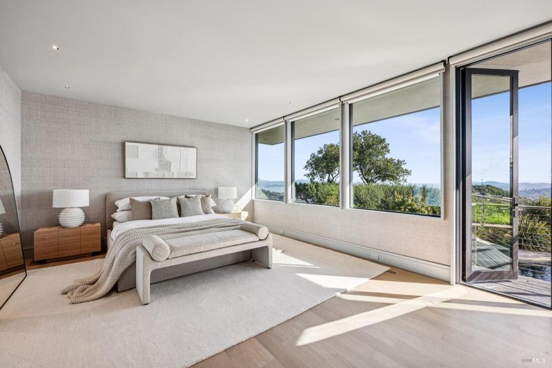 87 Oakmont sits at the top of a hill on one of the most special parcels in all of Central and Southern Marin. The home has gone through a full custom renovation, rebuilt with long-term quality in mind and materials that would be hard to recreate today. Set in Marin County's best microclimate, the property is surrounded by nearly 360 views of Mt. Tam, the San Francisco skyline, the bay, and two bridges. Most of the living space is on one level with 12' ceilings and an easy indoor/outdoor flow through floor-to-ceiling Blomberg windows. The great room opens to patios that wrap the home, offering more than 2,000 square feet of outdoor space for gatherings, quiet weekends, and everyday living. The kitchen was redesigned with custom cabinetry, a Heath tile backsplash, and insert-style appliances. You will see the attention to detail in the custom walnut shoji-inspired screens, leather-clad Poliform closet doors, thoughtful lighting, and custom cabinetry throughout. Each space was designed to be simple, functional, and long-lasting. The primary suite sits in its own corner of the home with views, natural light, and a calm feel. A separate space off the pool works well for workouts, guests, or a studio. The property is just under an acre with low-maintenance landscaping, a private driveway, and a three-car garage. A new roof and system upgrades make the home easy to move into and enjoy from day one. 87 Oakmont brings together mid-century lines, custom renovation, and a layout that fits entertaining, relaxed living, and time spent at home.