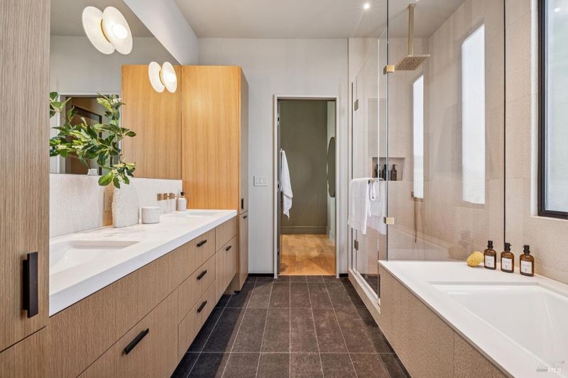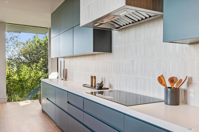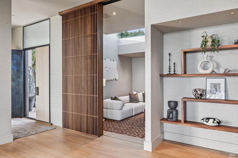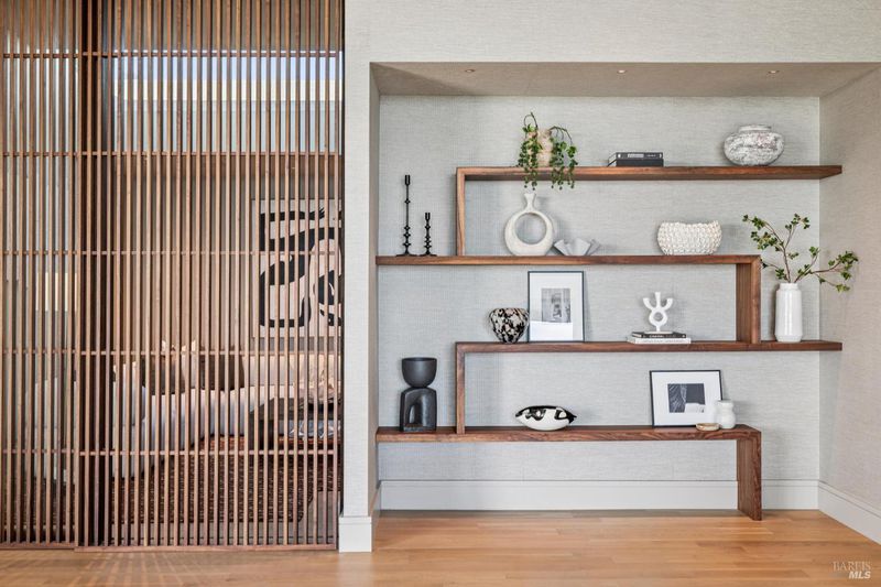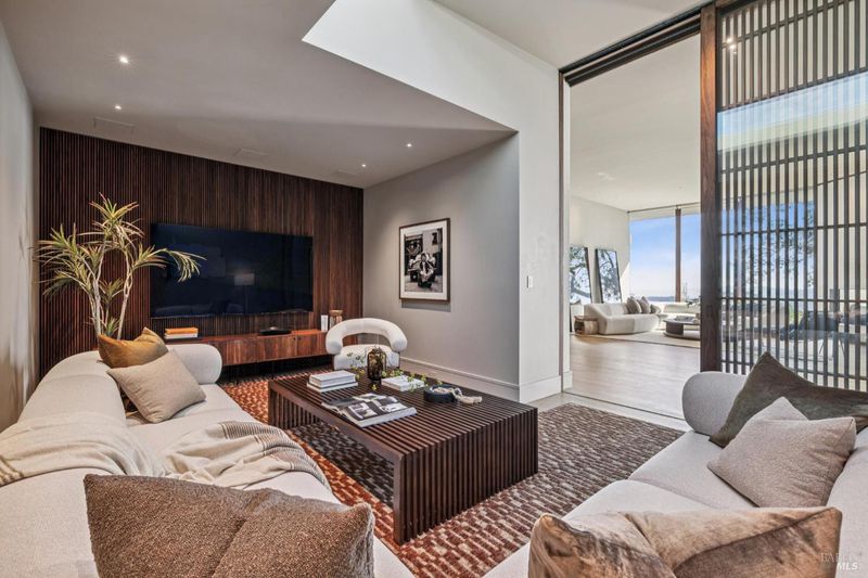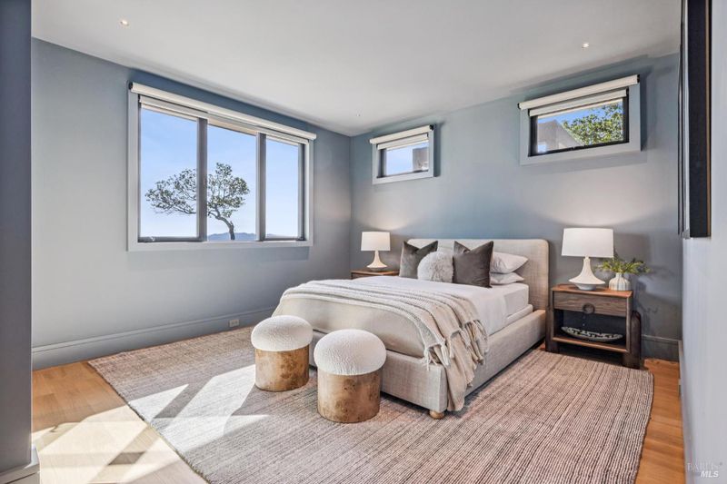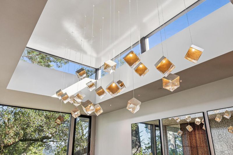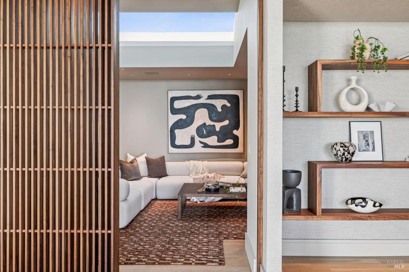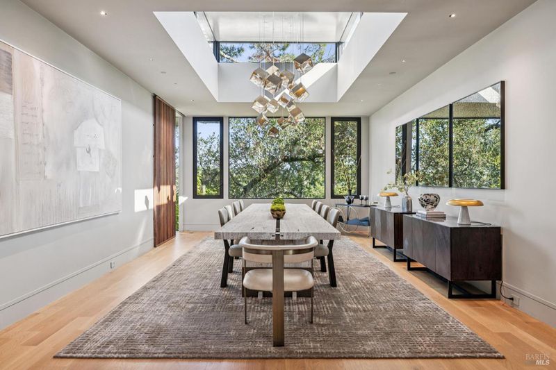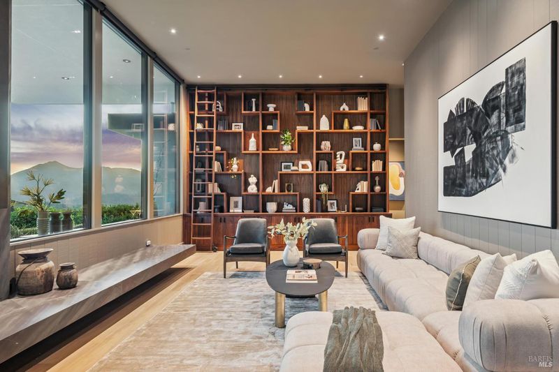 87 Oakmont sits at the top of a hill on one of the most special parcels in all of Central and Southern Marin. The home has gone through a full custom renovation, rebuilt with long-term quality in mind and materials that would be hard to recreate today. Set in Marin County's best microclimate, the property is surrounded by nearly 360 views of Mt. Tam, the San Francisco skyline, the bay, and two bridges. Most of the living space is on one level with 12' ceilings and an easy indoor/outdoor flow through floor-to-ceiling Blomberg windows. The great room opens to patios that wrap the home, offering more than 2,000 square feet of outdoor space for gatherings, quiet weekends, and everyday living. The kitchen was redesigned with custom cabinetry, a Heath tile backsplash, and insert-style appliances. You will see the attention to detail in the custom walnut shoji-inspired screens, leather-clad Poliform closet doors, thoughtful lighting, and custom cabinetry throughout. Each space was designed to be simple, functional, and long-lasting. The primary suite sits in its own corner of the home with views, natural light, and a calm feel. A separate space off the pool works well for workouts, guests, or a studio. The property is just under an acre with low-maintenance landscaping, a private driveway, and a three-car garage. A new roof and system upgrades make the home easy to move into and enjoy from day one. 87 Oakmont brings together mid-century lines, custom renovation, and a layout that fits entertaining, relaxed living, and time spent at home.