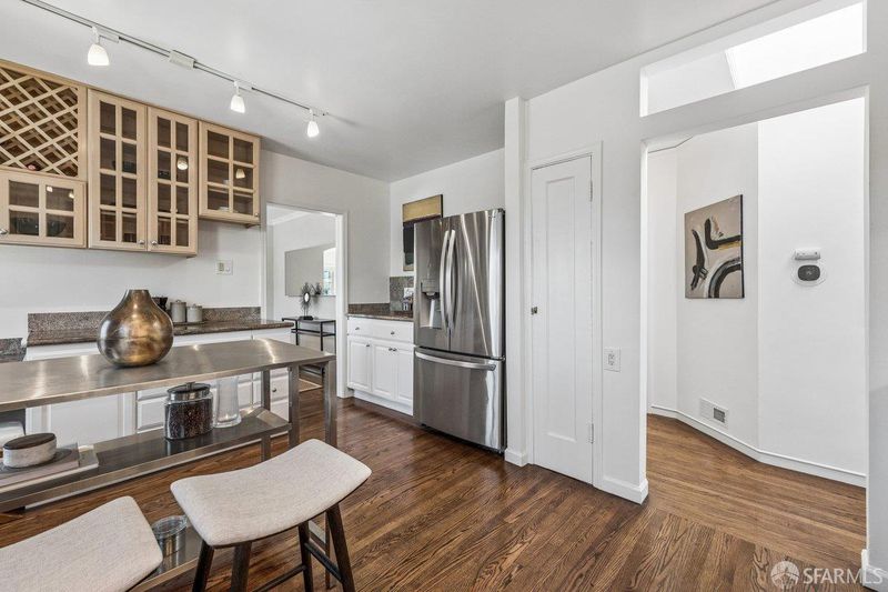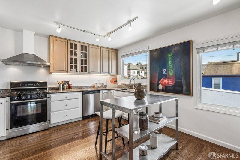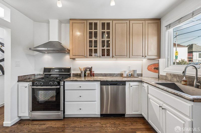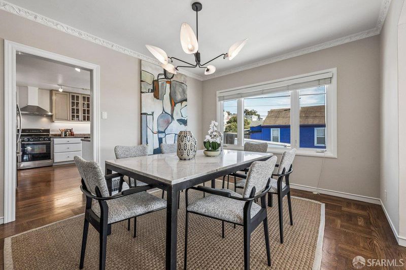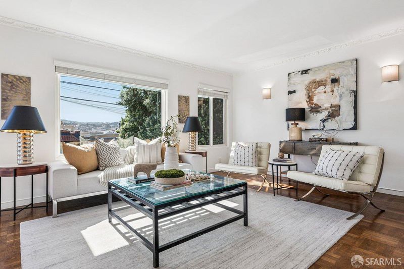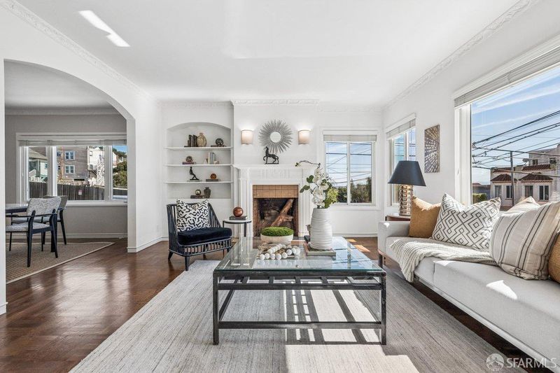 1939 Art Deco corner home in San Francisco's Bayview neighborhood with bay views and thoughtful updates. Main level features a connected living, dining, and kitchen layout with hardwood floors, original fireplace, built-ins, and abundant natural light from updated windows. Home expanded to 2BD/2BA with a permitted 2nd bathroom added by the current owner. The lower level offers high ceilings and flexible space suitable for storage, a workshop, or potential future use. Side-by-side two-car garage parking. Sunny backyard with patio, retaining wall, and space for gardening or outdoor dining. Major improvements include new roof and 3.3kW solar system installed in 2020 (approx. 5.2 MWh produced in 2025), bathroom remodel, furnace, ductwork and water heater replacement, upgraded water service, replacement windows in main living areas and downstairs front room, sewer lateral replacement, new garage door, exterior paint in 2023, city-required sidewalk repairs completed in 2022, and backyard fencing along two sides. Corner location offers strong natural light and outlooks over the Bay. Convenient access to the Third Street corridor, neighborhood parks, local markets, and the evolving Bayview waterfront.