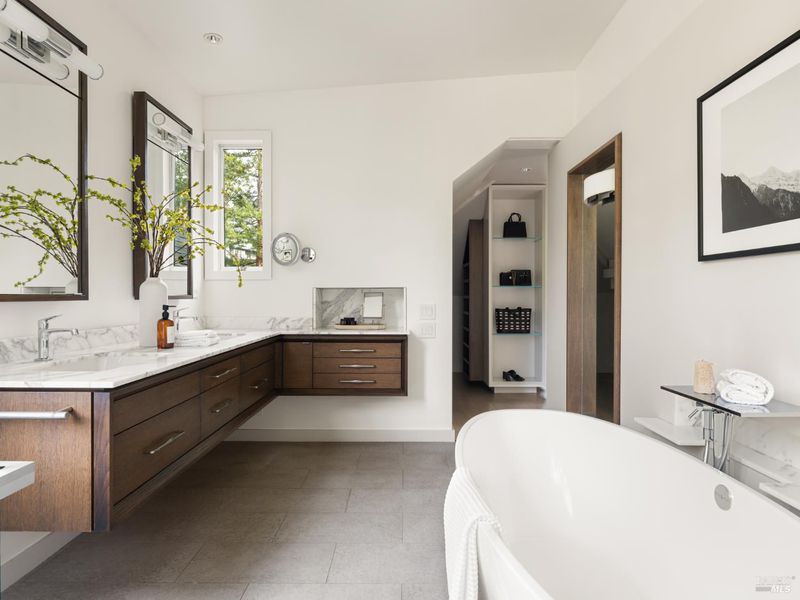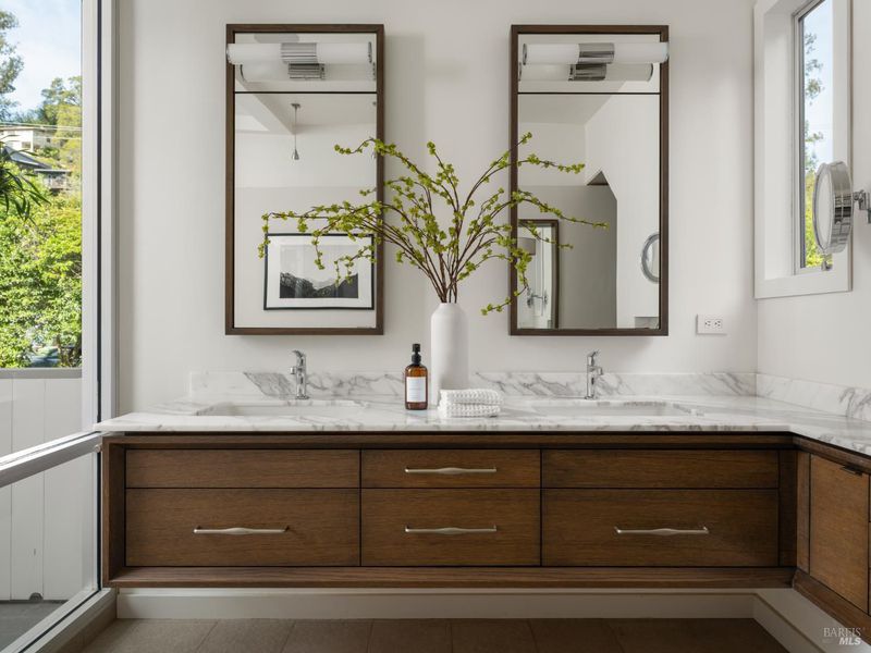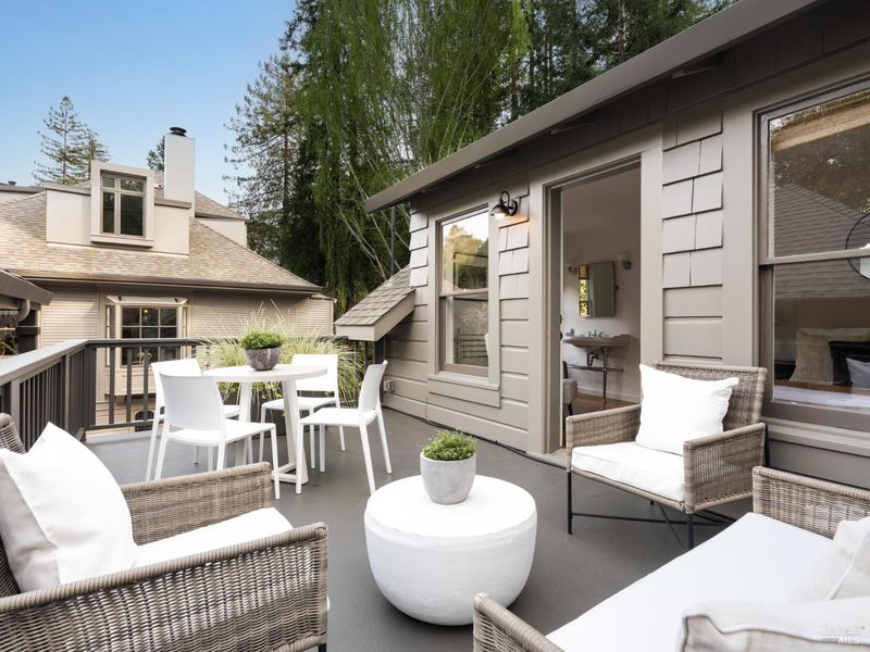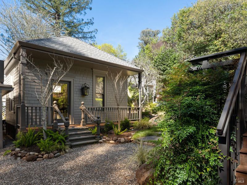 Located at the coveted corner of Laurel Street and Throckmorton Avenue, this remarkable Mill Valley property represents a rare convergence of architecture, landscape, creative heritage, and location. Originally built in 1907 and thoughtfully renovated over time, the approximately 3,153 sq ft main residence blends historic character with refined modern living. The living room, part of a generous great room, is anchored by a wood-burning fireplace and framed by a wall of windows that invite natural light and views of the surrounding gardens. Beautiful old-growth redwood millwork adds warmth and architectural character throughout. The chef's kitchen features a premium appliance suite, including Sub-Zero refrigeration, Miele ovens, and a Wolf range with a grill and a warming drawer. Two bedrooms and a shared bath are located on the main level, with French doors opening to the terrace and gardens. Upstairs, the primary suite offers a peaceful retreat beneath a cathedral ceiling, with balcony views of the redwoods, a custom dressing room, and a spa-inspired bath featuring Calacatta Gold marble and radiant-heated tile. The lower level includes a laundry room and a flexible space ideal for a media room, office, or creative studio. Set on approximately 0.28 acres, the beautifully landscaped grounds feature a level lawn, fruit trees, vegetable garden beds, Bluestone terrace, privacy hedges, and a magnificent birch tree believed to be among the largest in Marin County. The property's creative legacy is extraordinary. In the detached cottage, Francis Ford Coppola wrote the screenplay for The Godfather, and George and Marcia Lucas edited American Graffiti in the Carriage House above the garage. Gathering spaces for genius that must be experienced. The compound includes the main residence, a detached cottage with a kitchen and a full bath, and a one-bedroom Carriage House apartment with its own address and private deck, offering exceptional flexibility for guests, extended family, or creative space. Just moments from the Mill Valley Library, Old Mill Park, Dipsea Steps, Cascade Falls, Old Mill Elementary, and vibrant downtown Mill Valley, this exceptional, storied property is awaiting its next epic chapter.