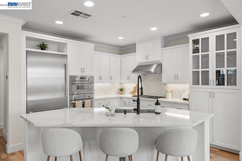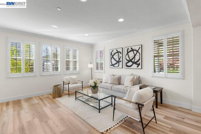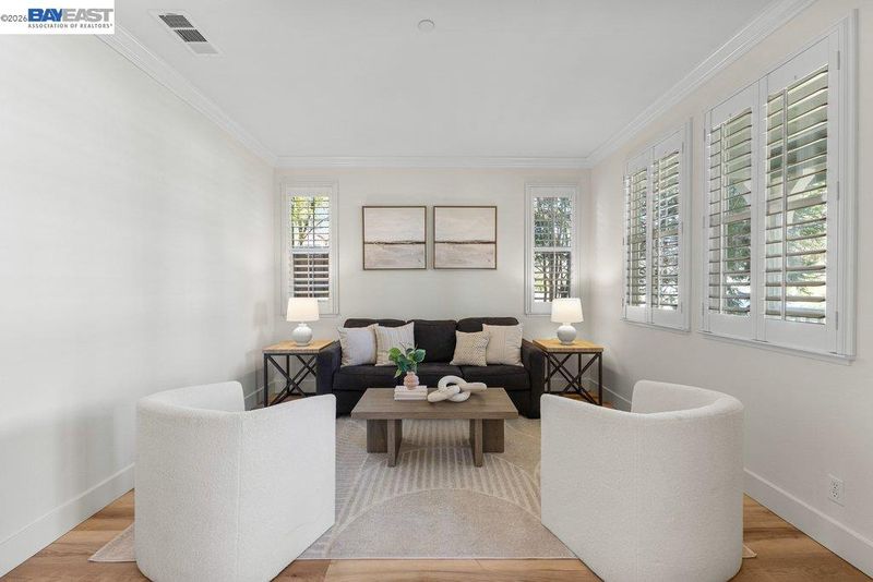 LIVE YOUR BEST LIFE! This spacious two-story home with beautiful curb appeal sits on a premier corner lot in South Livermore’s coveted DUNSMUIR neighborhood. The EAST facing home with covered front porch and OWNED SOLAR has a highly usable floor plan with 4 BEDROOMS, 3 FULL BATHS, and a custom DUAL-STATION OFFICE LOFT (opt 5th br). Very desirable 1 BEDROOM and 1 FULL BATH on the MAIN LEVEL. Modern wide plank flooring, crown molding, custom cabinetry, plantation shutters add a refined touch. Updated Kitchen features white cabinetry, quartz countertops, THERMADOR APPLIANCES and a 5-burner gas range and walk-in pantry with beverage fridge. The private primary suite comes with custom ORGANIZED, WALK-IN CLOSET and DUAL VANITY bathroom with a soaking tub and walk-in shower. Entertaining is easy in the backyard with patio protected by retractable awning, and HOT TUB under a gazebo surrounded by flowering trees. Located directly across from the neighborhood walking path and just moments from wineries and vibrant downtown Livermore and with excellent commute access to highways, ACE and BART trains. LIVERMORE LIVING AT ITS BEST! Welcome Home!