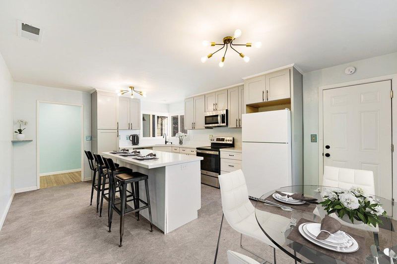 - 220 Volt Outlet, Dishwasher, Island, Microwave, Countertop - Quartz, Exhaust Fan, Oven Range - Electric