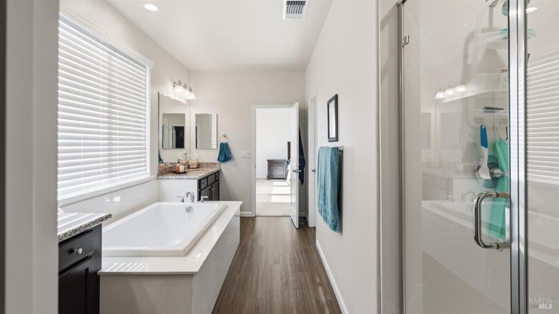 - Double Sinks, Granite, Shower Stall(s), Tub, Window