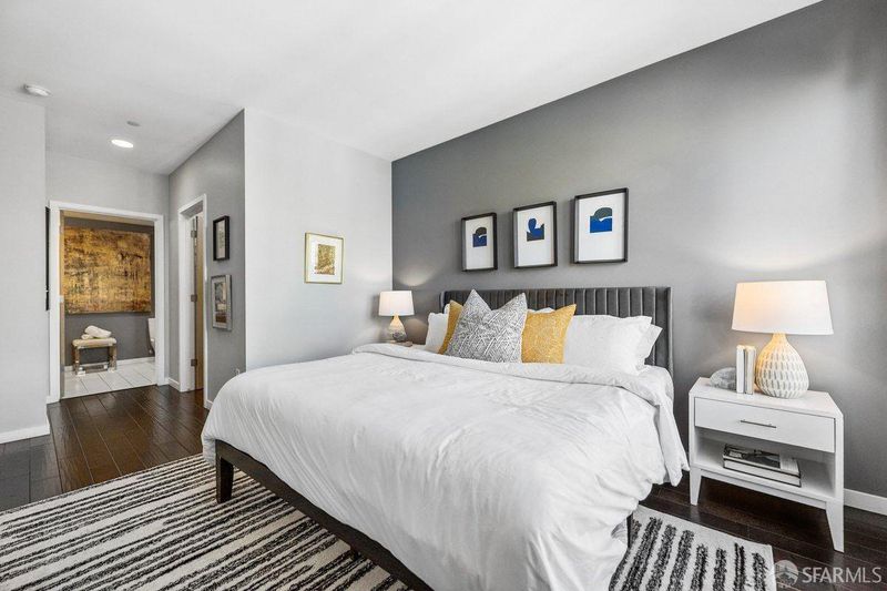 Top-floor three-bedroom, two-bath condominium offering 1,279 sq ft of well-planned living space in San Francisco's Bayview neighborhood. The open kitchen, living, and dining area connects directly to a private deck. The kitchen features marble countertops, a gas range, a microwave, and ample cabinetry. The primary suite includes a walk-in closet and en-suite bath with a double-sink vanity and walk-in shower. Two additional bedrooms provide flexibility for guests or home office use. In-unit laundry is included. Wood flooring runs through the main living areas. Additional features include one dedicated parking space and access to a shared courtyard and common areas. Mi Rancho market is located at street level, offering convenient grocery and prepared food options. Positioned along the Third Street corridor near local dining, wine bars, and neighborhood parks, including MLK Jr. Pool and playground moments away. Convenient access to SFO, Highways 280 and 101, and the T-Third Muni line.