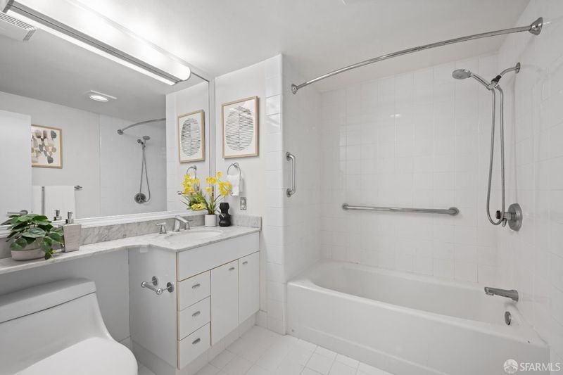 In the heart of North Beach, this refined residence embodies effortless indoor-outdoor living. The open-concept layout connects the living, dining, and kitchen areas in one inviting flow, opening through sliding glass doors to a private patio, a rare urban retreat ideal for morning coffee, alfresco dining, or evening gatherings under the city lights. Sunlight pours in, highlighting an rustic brick wall that adds timeless warmth and character to the space. The serene primary bedroom offers a peaceful escape with generous storage, while the spacious second bedroom provides comfort and privacy, perfect for guests, a home office, or creative retreat. A second full bath, in-unit laundry, garage parking + additional storage offer everyday convenience. Residents also enjoy access to a shared rooftop deck with sweeping city views, an inspiring spot for sunset gatherings, watching the Blue Angels, or just to enjoy the quiet moments above the buzz of North Beach. Only a stones throw from Washington Square Park, Joe DiMaggio Playground, and all of the most beloved cafes, restaurants, and boutique that North Beach has to offer.