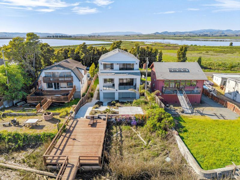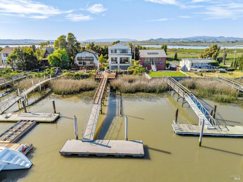 Perched to capture sweeping views of water, rolling hills, and picturesque vineyards, this stunning newer modern home offers a lifestyle that feels like a private retreat every day. From shimmering sunrises over the water to majestic evenings under the stars, the setting is nothing short of breathtaking. Perfectly positioned on Milton Road, this property offers a rare combination of tranquility and accessibility located in a desirable pocket of Napa that provides a more convenient drive to both the Bay Area and Sonoma. Whether commuting or enjoying weekend wine country escapes, you'll appreciate the ease of access without sacrificing privacy. Designed to embrace its extraordinary surroundings, the home features three expansive walk-out decks, one privately accessed from the luxurious primary suite and two extending from the main living areas creating seamless indoor-outdoor living. The water views from the home, decks, and private dock are simply unforgettable, offering a front-row seat to nature's beauty. Living on Milton Road means embracing a unique waterfront lifestyle. Enjoy your own private dock and boat parking, making it effortless to spend days cruising the waterways, paddle boarding at sunrise, or entertaining guests right at the water's edge. It's a rare opportunity to blend wine country living with an active, outdoor lifestyle. Inside, wide plank wood floors flow throughout a light-filled, open-concept design filled with an abundance of natural light. The modern aesthetic is complemented by stainless steel appliances, a spacious indoor laundry room with ample storage, and a versatile office space just off the upstairs hallway ideal for today's flexible living needs. The generously sized primary suite offers a serene sanctuary, complete with a large walk-in closet and direct deck access. All bedrooms are impressively sized, with two of the three featuring oversized walk-in closets. Adding to the home's appeal is abundant parking, a long private driveway, and an impressive 6-car garage perfect for car enthusiasts, recreational gear, or additional storage. Just moments away, Stanly Ranch, Auberge Resorts Collection elevates your lifestyle with access to world-class dining, luxury spa experiences, wellness programs, & curated social spaces bringing a resort-style experience right to your doorstep. This is more than a home, it's an exceptional time to own a waterfront sanctuary in Napa, where luxury, lifestyle, & location come together effortlessly.