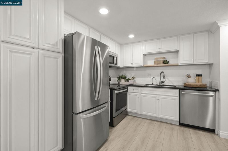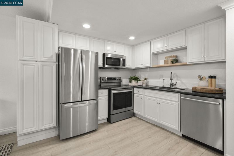 - Dishwasher, Electric Range, Microwave, Refrigerator, 220 Volt Outlet, Stone Counters, Electric Range/Cooktop, Disposal