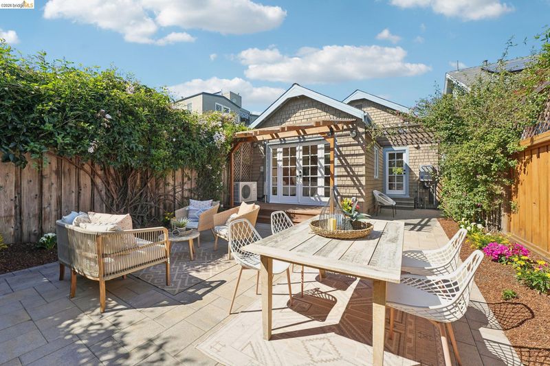 Charming bungalow in lower Rockridge, thoughtfully maintained throughout. This level-in, single-story home offers a well-designed layout for effortless living. The front of the home features a welcoming living room with fireplace, two well-proportioned bedrooms, a full bath, and convenient interior access to a one-car garage with laundry. At the rear, the dining area and kitchen open seamlessly to the backyard - ideal for indoor-outdoor dining and entertaining. The private primary suite, with vaulted ceilings, is quietly tucked away and features French doors that open to the garden, along with a second full bath. The unusually spacious rear yard offers room to relax, garden, or create your own outdoor retreat. Ideally located near Rockridge and Temescal’s popular shops and restaurants, including Whole Foods Market and Rockridge BART. Zoned for highly regarded Peralta Elementary School!