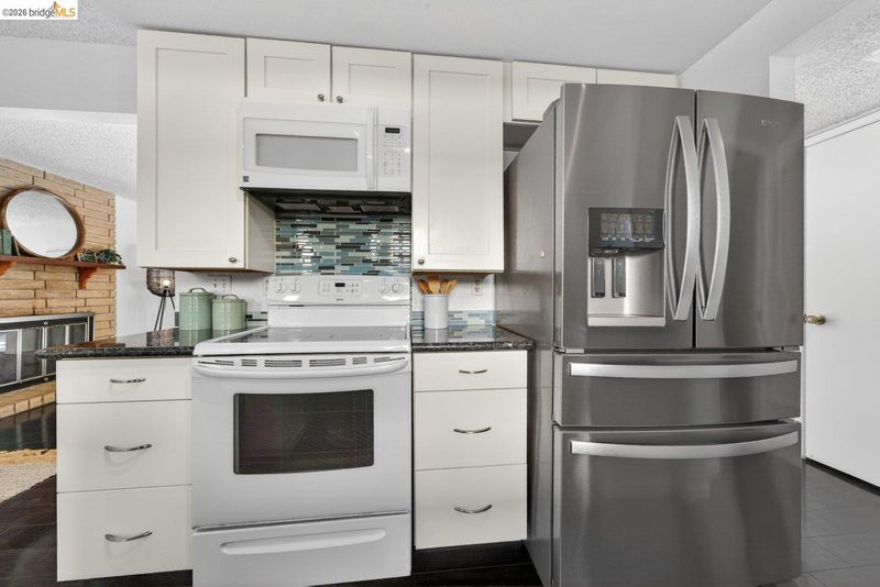 - Electric Range, Microwave, Refrigerator, Counter - Solid Surface, Electric Range/Cooktop