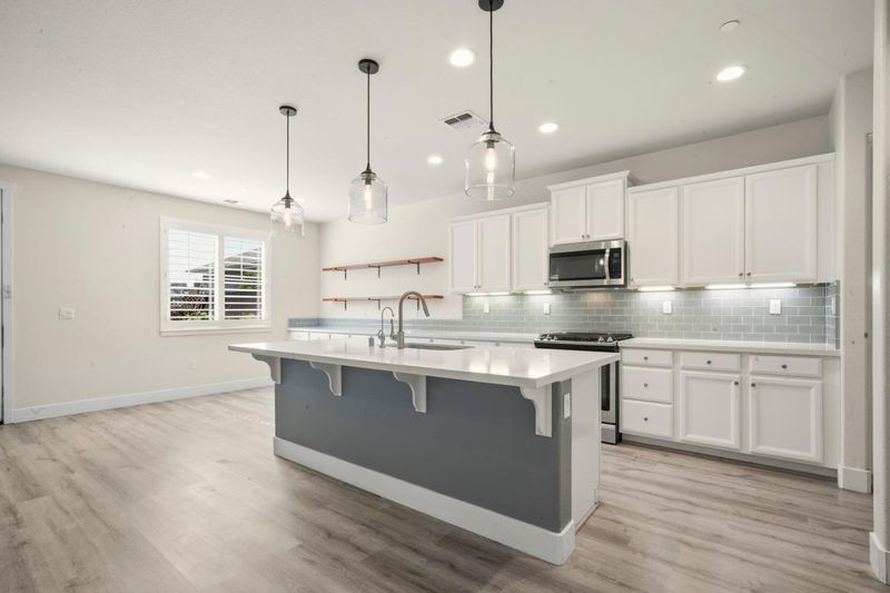 - Countertop - Quartz, Dishwasher, Exhaust Fan, Garbage Disposal, Island with Sink, Microwave, Oven - Gas, Oven Range - Gas