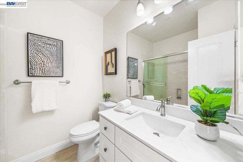 Welcome to this beautifully updated 3-bedroom, 2.5-bath townhome in the sought-after Mayfield community of Warm Springs, Fremont*Perfectly positioned overlooking the community park & walking paths, this light-filled home offers a rare blend of privacy, views, & convenience*The open floor plan features laminate flooring, recessed lighting, fresh interior paint, & a stylish kitchen w/new cabinetry, quartz countertops, & stainless steel appliances*The living room showcases soaring ceilings & a cozy gas fireplace, while large windows throughout fill the home w/natural light*Both full bathrooms have been refreshed w/new vanities, refinished tubs, new faucets, & updated fixtures, along with new toilets in all 3 bathrooms*The spacious primary suite offers vaulted ceilings, a private balcony w/park views, & a walk-in closet*Convenient first-floor laundry includes a washer and dryer*The tandem 2-car garage provides generous storage*Enjoy the enclosed front patio overlooking open green space, perfect for relaxing outdoors*The Mayfield community features a central greenbelt park and community center with a low HOA. Ideally located near Warm Springs and Milpitas BART, Tesla, shopping, hiking trails, and Highways 680, 880, 237. Move-in ready! Open house Sat 3/28 & Sun 3/29 from 1:00-4:00 PM.