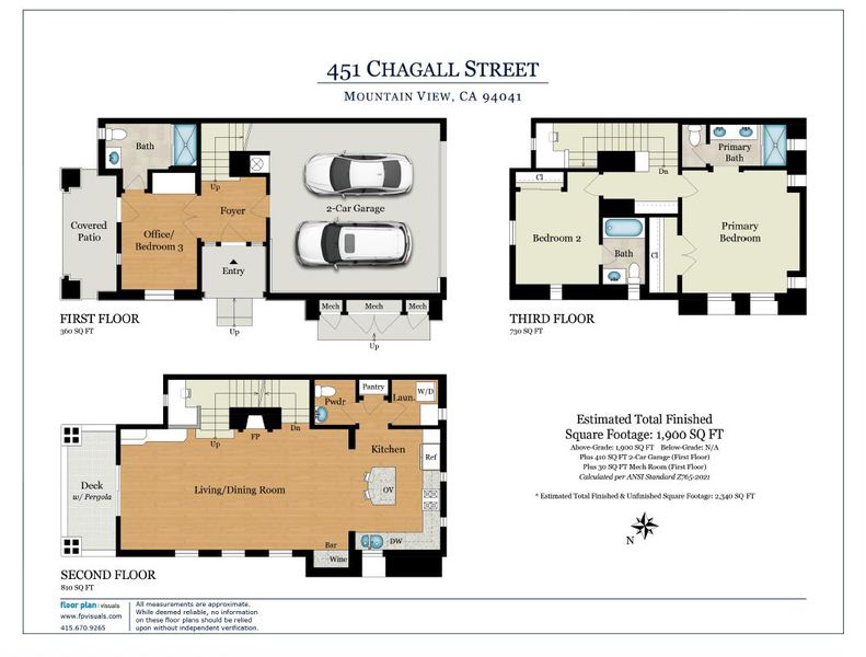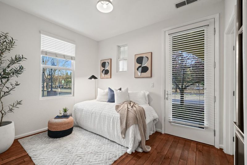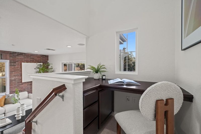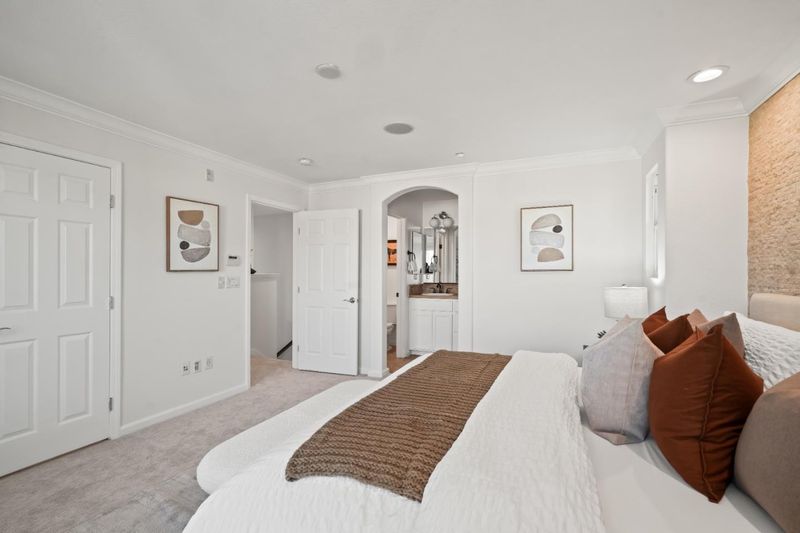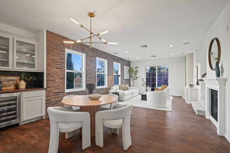 Former model end-unit townhome in Mountain Views luxury Mondrian community. This home features three ensuite bedrooms, including a ground-level suite with patio access, perfect for guests or a home office. The main level offers a seamless bright entertaining and kitchen layout with a gas fireplace that anchors the living room. The level is complete with upgraded tile flooring, decorative brick wall, large balcony, bar area with wine refrigerator, luxurious island kitchen and stainless steel appliances. Additional highlights include central heat and A/C, separate laundry room, upgraded built-ins on all levels, and an attached two-car garage with storage around. The home is detached on three sides with an abundance of light. Set in a serene tree-lined community with a pool, spa, playground, and BBQ area, near Sylvan Park with tennis courts. Minutes to The Village at San Antonio Center for dining, groceries, and entertainment. Easy access to Caltrain, VTA Light Rail, and Highways 101, 237, 85, and 280. Only 3 miles to Google and other major Silicon Valley employers.