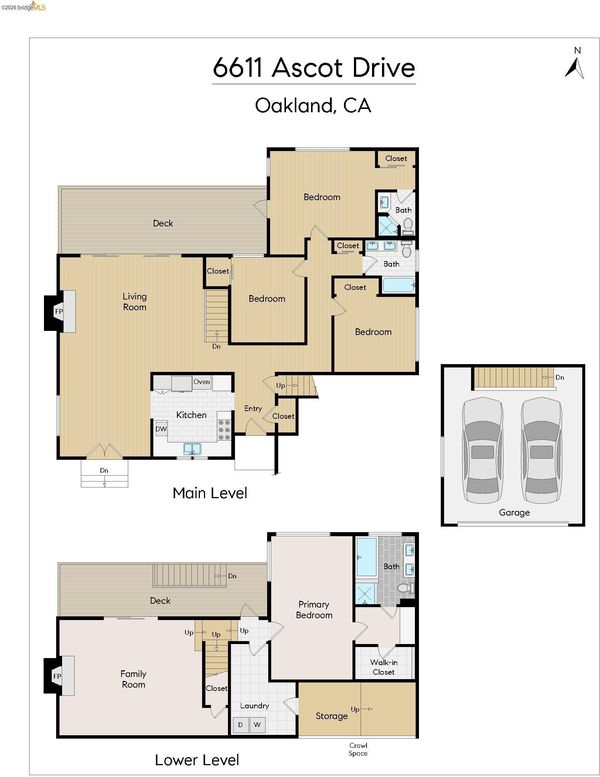 6611 Ascot Dr is a stunning mid-century 4 BD, 3 BA retreat with dazzling Bay views, spanning a sweeping 2,734 sq ft on a 9,112-sq-ft lot off Skyline in private Piedmont Pines. Enjoy vaulted open-beam ceilings, hardwood floors, fireplaces, two ensuite bedrooms and view decks, upgraded kitchen and baths, two-car garage parking, and an ideal two-level floor plan. The main level features a primary suite with bay views and deck access plus two more bedrooms and a bath, and the kitchen, dining room, and living room. The kitchen boasts a six-burner Wolf range, double Fisher & Paykel wall oven, pastry island, and views of the front yard: lemon tree, Eastern Redbud trees, Japanese maple, and more. Through the dining room is a massive living room with soaring ceilings, modern fireplace, and sliding glass doors to the upper deck with North Bay views. Downstairs offers a large, carpeted family room with second fireplace and access to the lower Bay-view deck, and a big laundry room. The true primary suite here finds a fourth bedroom with bay views, vanity room, walk-in closet, and spa-like bathroom with shower and soaking tub. 6611 Ascot Dr is perched on a verdant hillside lot in a fantastic location off Skyline, with East Bay Regional Parks, Montclair, and Lamorinda mere minutes away.