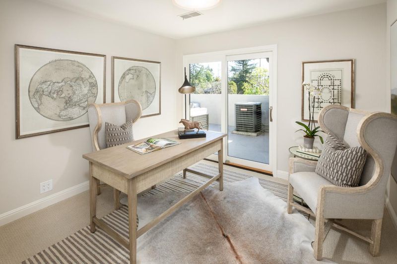 Gracefully set on a peaceful cul-de-sac, this magnificent Mediterranean-inspired residence blends timeless architecture with modern luxury in a coveted Menlo Park neighborhood. A dramatic foyer welcomes you with soaring ceilings, a sweeping curved staircase, arched windows, and a dazzling chandelier. Elegant living and dining rooms feature crown molding, arched openings, and doors opening to inviting patios. The stunning chefs kitchen boasts stainless steel appliances including a Thermador 6-burner cooktop & refrigerator, bay window, and a spacious island, flowing into an expansive family room with backyard access and a stylish bar. A versatile flex room with built-ins offers space for a study, office, or casual dining. The luxurious primary suite features French doors to a Juliette balcony and private terrace, plus a spa-inspired bath with soaking tub, large shower, heated floors, skylight, and walk-in closet. Beautifully landscaped grounds offer lush lawn, travertine patios, pergola with heaters, citrus and fig trees, and a play area. Additional highlights include a 3-car garage with Tesla charger, A/C, dual-zone heating, Sonos speakers, tankless water heater, and new hardwood floors. Ideally located near Sand Hill Road, Stanford, dining, Hwy 280 and outstanding schools!