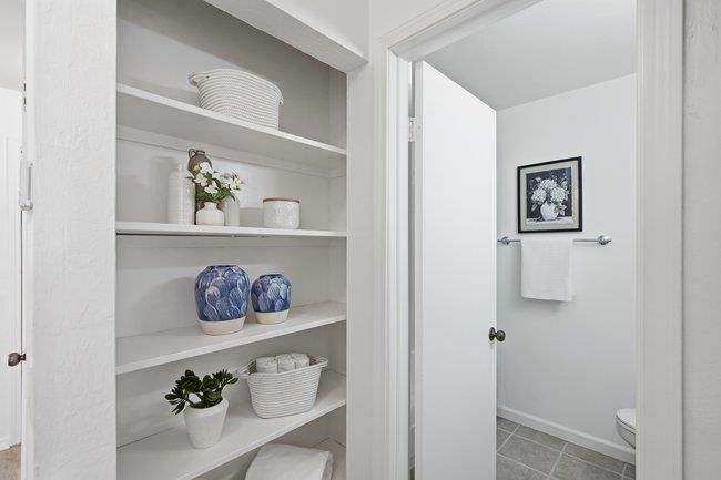 Every day is a staycay when one is blessed to call this sun-drenched, treetop oasis their home sweet home. Featuring inviting views of the pool, clubhouse and greenbelt, this second story end-unit condo has been freshly painted and updated with contemporary tile and granite accents, stainless steel appliances, spacious bedrooms with generous closets and shelving, plus two well-appointed bathrooms offering relaxing tub and walk-in shower options. You'll also appreciate the sheltered deck with bonus storage, full-size interior washer and dryer, plus-sized downstairs 1 car garage and ample guest parking. The Greenhouse development is located within the Palo Alto Unified and Gunn High School District and offers a convenient fitness course that encircles the property. One can say that this property checks all of the boxes!