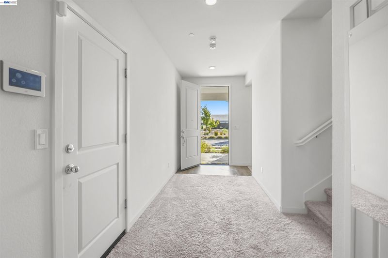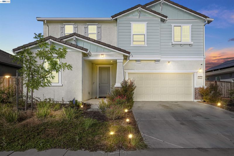 This stunning two-story home offers an open-concept floor plan with soaring 9-ft ceilings and a spacious great room with direct access to the backyard, perfect for entertaining. The gourmet kitchen features a large island, sleek quartz countertops, and a double-basin sink. Upstairs, a versatile loft provides the ideal space for a home office, media room, or gym. The private primary suite includes a walk-in closet, dual-sink vanity, walk-in shower, and a convenient linen closet. This ENERGY STARĀ® certified home comes equipped with a tankless water heater and programmable thermostat for comfort and efficiency. Enjoy a desirable location near scenic walking trails and a future community park.
