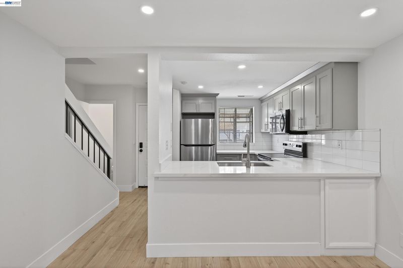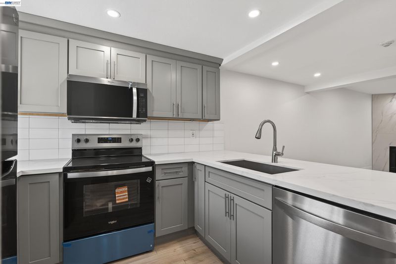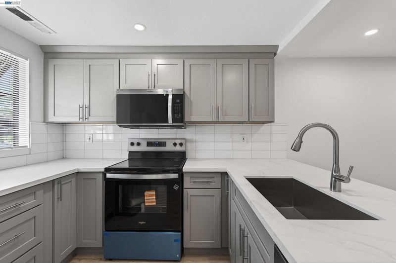 - Dishwasher, Electric Range, Microwave, Refrigerator, Dryer, Washer, Counter - Solid Surface, Electric Range/Cooktop, Updated Kitchen