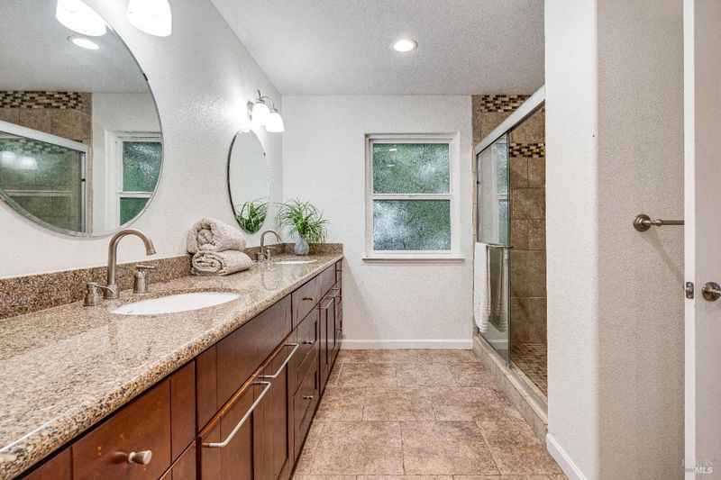 Spacious South Napa retreat featuring dual primary suites, skyline views, and exceptional privacy. Set back from the street on a peaceful 0.21 acre lot, this approximately 3,238 sq. ft. 4-bedroom, 3-bath home offers open-concept living with vaulted ceilings, expansive windows, and a cozy fireplace perfect for both entertaining and everyday living. The flexible floor plan includes primary suites on both levels and a loft-style family room with sweeping views of Coombsville's rolling hills.