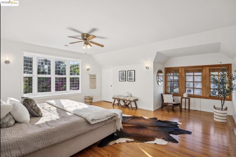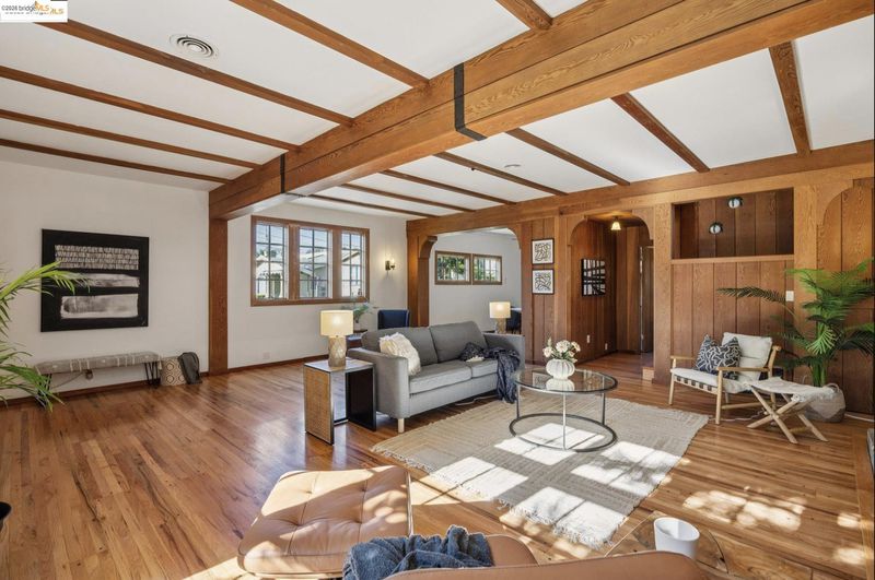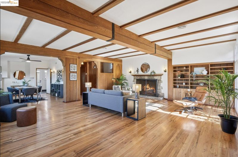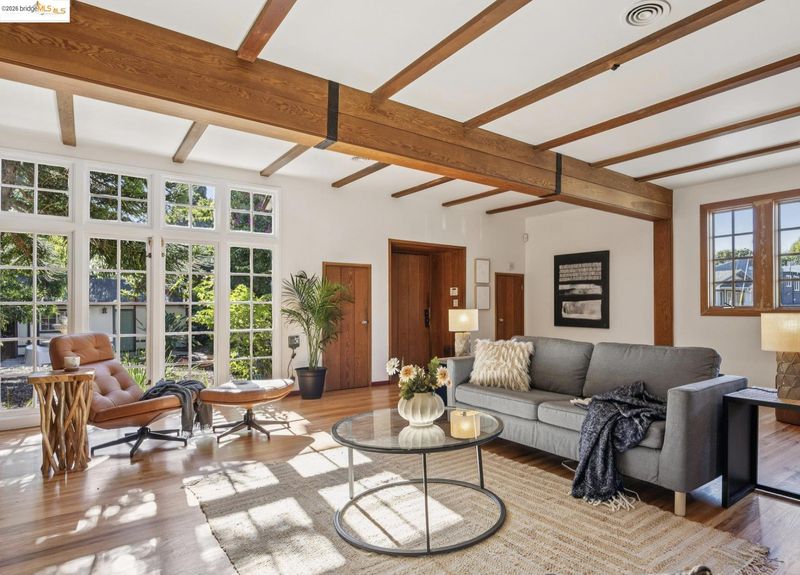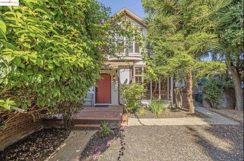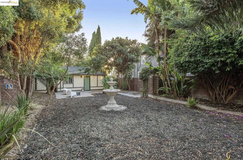 Originally built as a carriage house for the historic Oak Tree Farm estate, home to the well known Cohen Bray House, this rare Oakland residence features architecture seldom seen in the area and stands apart from surrounding homes in the Oak Tree neighborhood. Inside, soaring ceilings, exposed beams, and abundant natural light define the open living and dining areas, anchored by a striking fireplace. The kitchen features stone countertops and stainless appliances, while a half bath and laundry add convenience on the main level. Freshly refinished wood floors run through the living areas and bedrooms, and the full bath includes a separate shower and soaking tub. The expansive garden is one of the home’s most special features. Set back from the street and surrounded by mature greenery, it feels like a private oasis rarely found in this part of Oakland. A detached studio offers flexible space for a home office, creative studio, or storage. Concept plan exploring the potential for future off-street parking are included in the disclosure package.