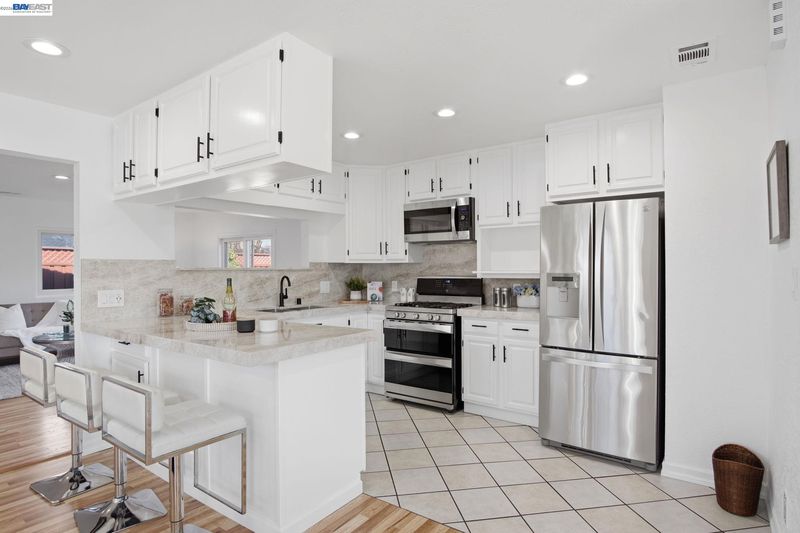 Discover elevated living at 4531 Stevenson Blvd, an elegant east-facing residence in one of Fremont’s most coveted locations. This beautifully updated 4-bed, 2-bath home offers 1,670 sq ft of modern comfort on a generous 6,000 sq ft lot, featuring an airy open-concept design that seamlessly blends the living, dining, kitchen, and expansive family room—perfect for sophisticated entertaining. The gourmet kitchen impresses with quartz countertops, matching backsplash, and white real wood cabinetry, while the versatile 4th bedroom serves effortlessly as a guest suite or executive office. Luxurious upgrades include new interior and exterior paint, recessed lighting, dual-pane windows, and a finished epoxy-floored garage. Outdoors, enjoy a paved patio surrounded by fruit trees, fresh new lawns, and a charming white picket-fenced front yard. With close proximity to premier shopping, top schools, hospitals, transit, major tech employers, and effortless access to I-880 and I-680, this home offers the perfect blend of style, comfort, and convenience. A rare Fremont offering that truly elevates everyday living.