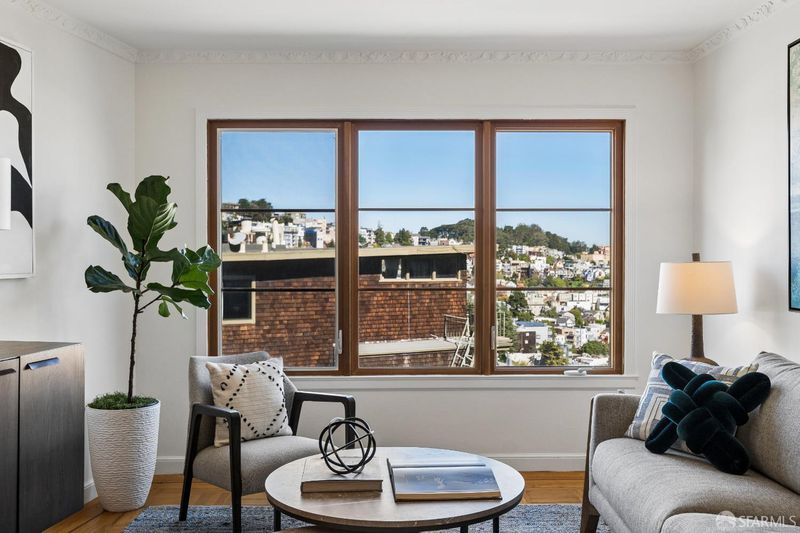 Sun-drenched top-floor condominium in a mid-century building with modern refinements and spectacular sweeping city and valley views. This thoughtfully updated home features two generous bedrooms, an eat-in kitchen, and a stunning new designer bathroom wrapped in sage green Heath tiles with custom oak trim and backlit mirror. Period details shine throughout: herringbone parquet floors, ornate crown molding, and a wood-burning fireplace as the living room centerpiece. The huge one-car garage includes extra storage and private washer/dryer. Step outside to your private deck and lush terraced gardenan urban oasis for dining and entertainingwith a gorgeously green vacant lot to the north providing exceptional light, air, and openness. Located on Clarendon Heights's peaceful winding streets with direct access to Twin Peaks hiking trails, scenic vistas, and public transit (33 and 37 lines). A rare blend of vintage charm and contemporary luxury.