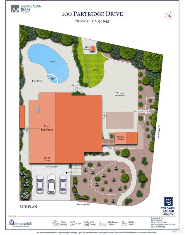 Nestled in Novato's coveted Partridge Knolls neighborhood and just moments from Mt. Burdell, Marin County's largest nature preserve, 100 Partridge Drive offers 4 bedrooms, 2.5 bathrooms, and approximately 2,300+ sqft of thoughtfully designed living space that seamlessly blends style, comfort, and indoor-outdoor living. Surrounded by open space and scenic trails, this home captures the relaxed Marin lifestyle buyers seek. Inside, soaring ceilings, abundant natural light, and beautiful hardwood floors create a bright and welcoming atmosphere. The spacious living and dining room combination is ideal for entertaining, while the kitchen features generous cabinetry and a charming breakfast area overlooking the backyard. The inviting family room with a wet bar provides a fantastic space for gatherings, movie nights, or casual entertaining. Upstairs, the private primary suite offers a true retreat, thoughtfully designed for both comfort and functionality. The recently updated, designer-inspired bathroom showcases dual sinks, dual showerheads, and a stylish Italian porcelain tiled walk-in shower, complemented by a spacious walk-in closet. A dedicated office area within the suite provides a quiet and convenient space for working from home or unwinding in privacy. The backyard is designed for memorable entertaining, with multiple levels of outdoor living, a gated sparkling pool, a lawn area, expansive hardscape, and a covered outdoor kitchen with a built-in BBQ, ideal for hosting while enjoying views of the surrounding open space. A three-car garage and close proximity to hiking, shopping, and everyday conveniences complete this exceptional Novato offering.