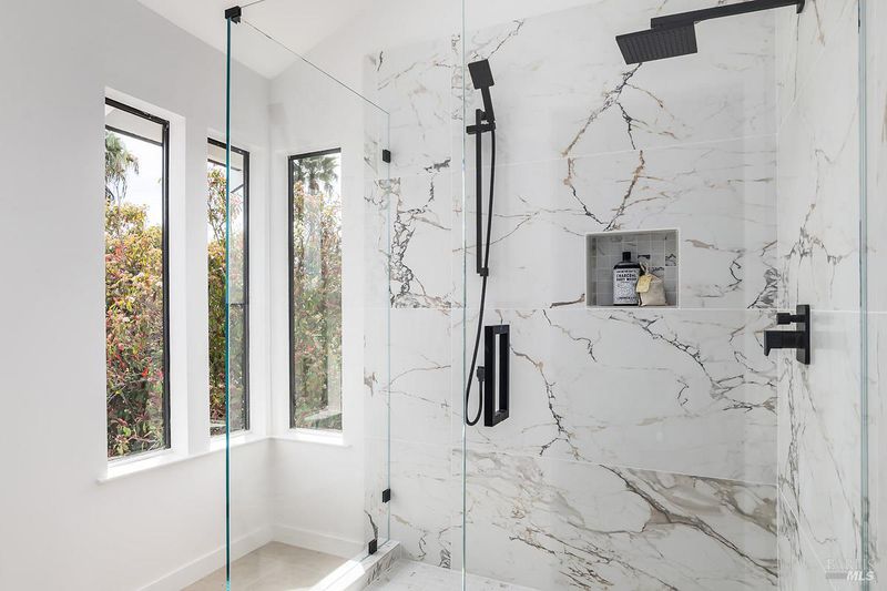 - Double Sinks, Multiple Shower Heads, Quartz, Shower Stall(s), Tile, Window