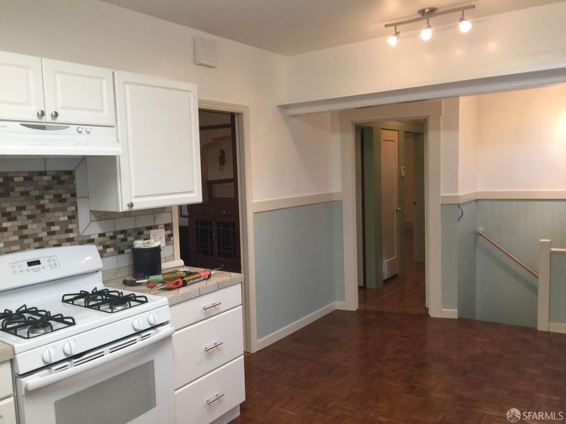 Come to see this special Marina style home on sunny Potrero Hill! Built in 1926, there is beautiful original detailing! An abundance of windows provides lots of natural light. The living room has a bay window, a peek-a-boo downtown view, fireplace, built-in bookcases and natural wood moldings and baseboards. The large formal dining room has a built-in hutch, glass doors with crystal and brass knobs intricate wood moldings and archways. The large kitchen has tile counters and a gas stove. A hallway leads to the two large bedrooms, each opening to the back sunroom. The sunroom opens to an enclosed sunporch and has access to the pretty, west-facing garden with a large lemon tree and flowering bushes. An internal staircase leads to the garage and the additional rooms on the lower level. There is a side door next to the garage door providing separate access to this area. The well cared for home was recently painted and has a new roof.