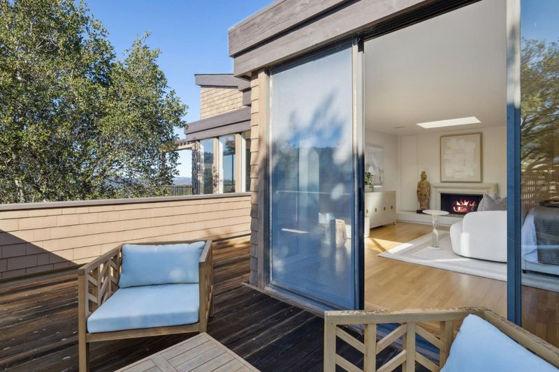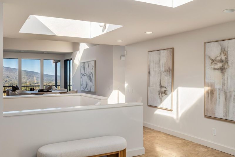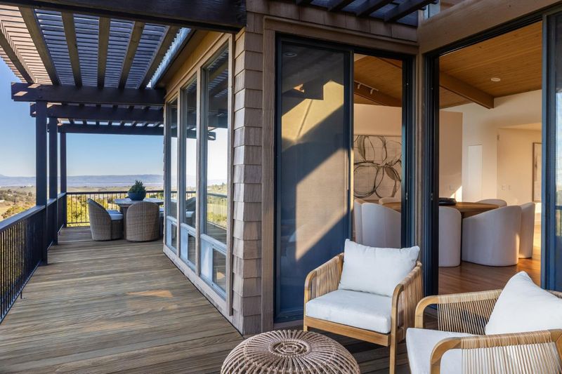Set in the tranquil Portola Valley Ranch with breathtaking views, this magnificent home blends architectural elegance with stunning natural surroundings. An open floor plan and walls of glass frame sweeping vistas of rolling hills and the Bay, with sightlines reaching San Francisco and Oakland. Multiple expansive decks, two spanning the full width of the home offer exceptional spaces for entertaining or relaxation. The main level features a grand entry illuminated by a dramatic skylight, leading to a striking LR/DR w/ soaring vaulted ceilings, skylights, FP, and a hidden bar. The light-filled eat-in kit, centered around an oversized oval island and SS appliances, opens directly to an al fresco dining deck. Also on the main level is a spacious bedroom w/ skylight and glass slider to a private deck, along with an elegant bath. The luxurious primary suite provides a serene retreat with its own FP, balcony, and WIC. An open staircase leads to the lower level, where a gorgeous FR w/ FP opens to a covered deck w/ expansive views. This level also includes a dedicated office, two full baths, laundry rm, and generous storage. With its thoughtful design and awe-inspiring setting, this home offers a rare opportunity for refined living in one of the Bay Areas most coveted communities.