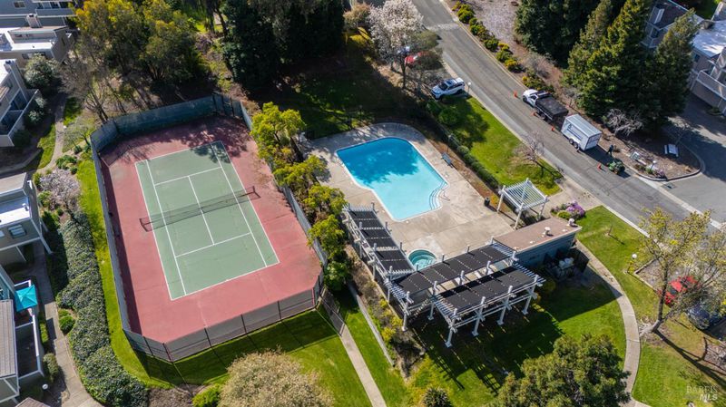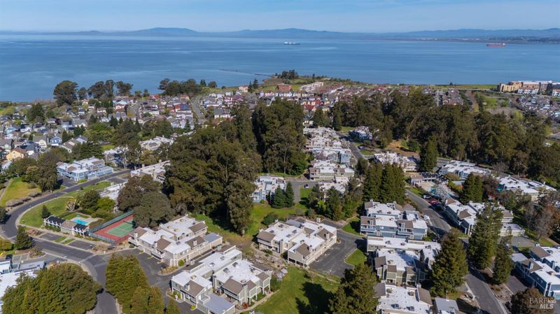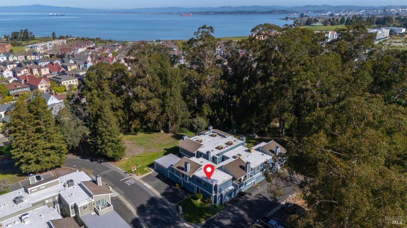 Upper penthouse model end unit in peaceful Olympian Hills. Spacious living room with fireplace and vaulted ceilings. Dining area has sliding door to private deck. Kitchen has oak cabinets. 2 bedrooms and 1.5 baths. 2 car garage plus open guest parking across the driveway. 3 pools and tennis courts in complex. Walking distance to Hercules Promenade along the bay. Great location on the west side of Highway 80.