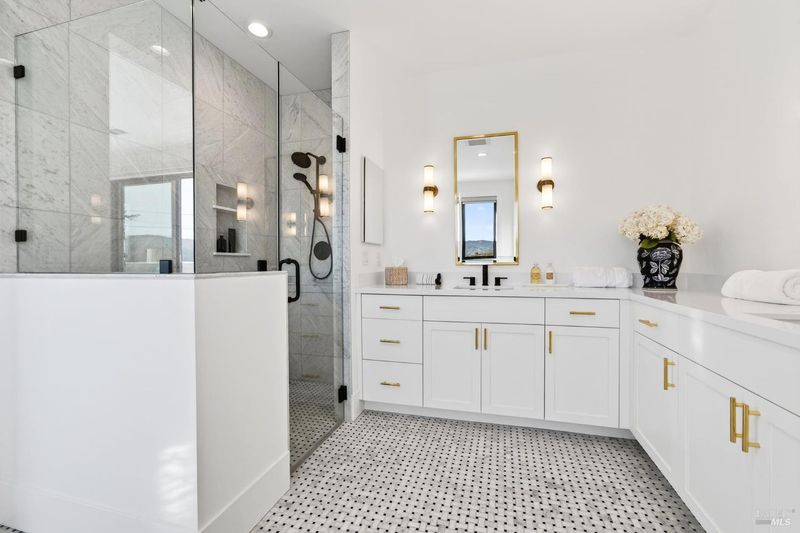 - Double Sinks, Low-Flow Toilet(s), Marble, Quartz, Shower Stall(s), Soaking Tub, Tile, Window