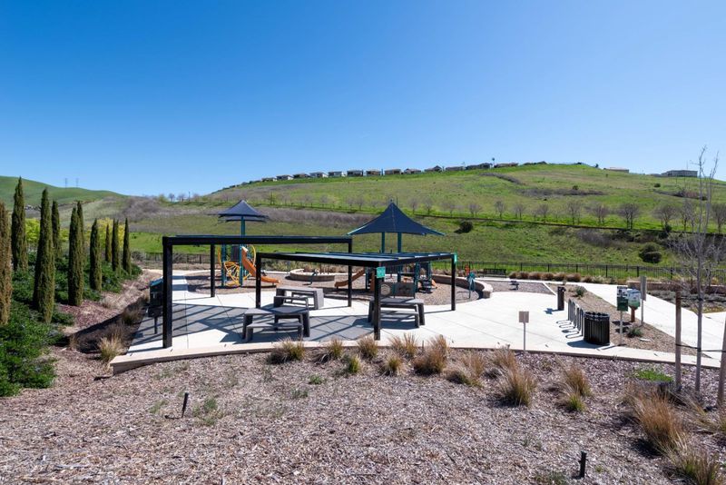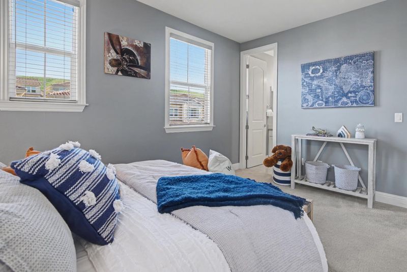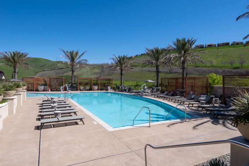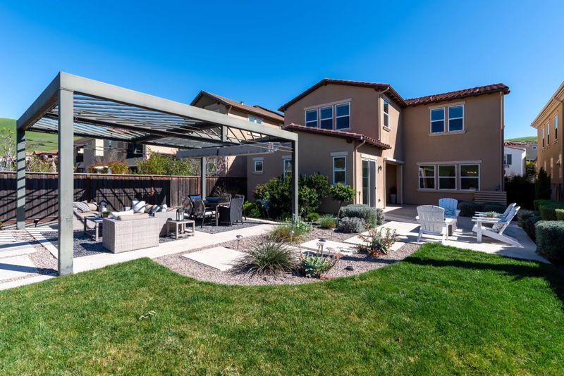 Rare Toll Brothers home with no rear neighbors and panoramic hill views, offering exceptional privacy on a large lot. The open-concept main level features a spacious great room, elegant dining area, and chefs kitchen with premium stainless steel appliances, gas range, extended cabinetry, and pantryall with Shaw hardwood flooring. A designer staircase with upgraded railing adds a refined architectural touch.Upstairs, an expansive loft provides space for gatherings, movie nights, or work station. The oversized primary offers a spa-inspired bath with dual vanities, soaking tub, and large walk-in closet. All bedrooms have full dedicated bathrooms. This floorplan includes a private casita with its own entrance and full bath, ideal for multi-generational living, guests, or a private office. Somfy motorized retractable CA room screens and a heat lamp enhance outdoor entertaining. Dual-zoned HVAC and owned solar. The professionally designed backyard offers a low-maintenance retreat with a fire pit, outdoor dining area, and hill views. Residents enjoy resort-style amenities including a clubhouse, huge pool with shallow-entry area, party hall, cabanas, BBQ areas, and playgroundall with a low HOA. Top-rated schools complete this exceptional East Bay home.