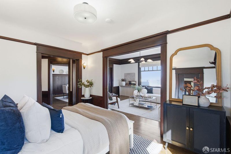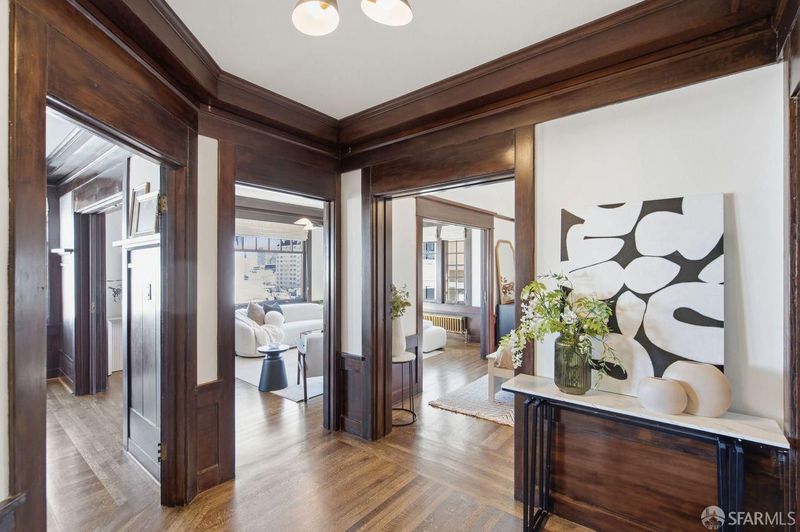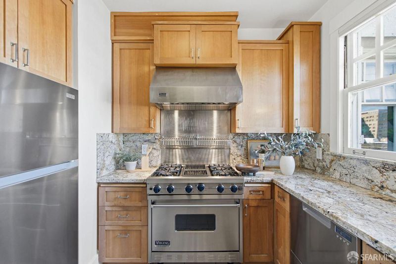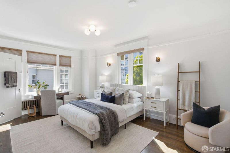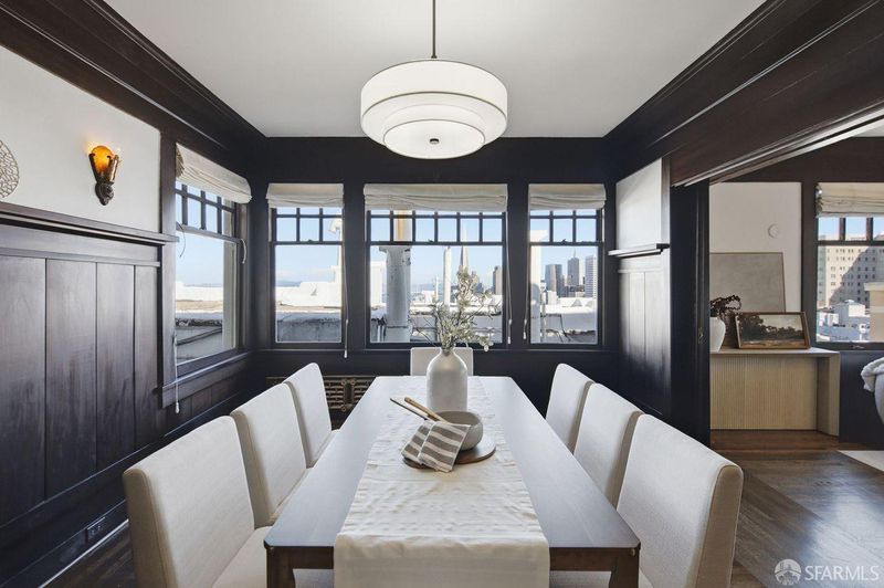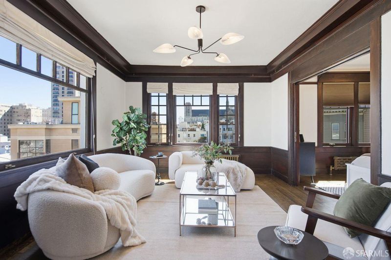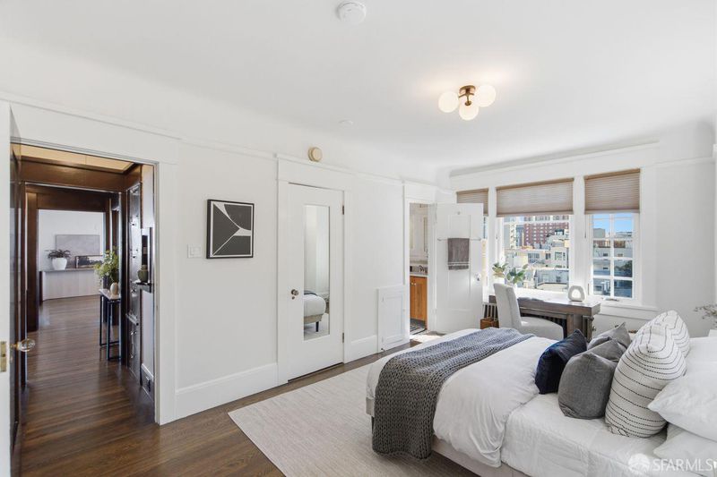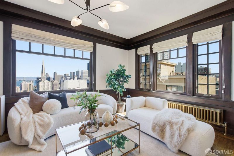 Rarely available, this generously proportioned two-bedroom, one-bath condo on Nob Hill sits in a classic San Francisco building and boasts stunning city and bay views.Blending timeless charm with modern comfort, the residence greets you with beautifully refinished hardwood floors that flow seamlessly throughout, fresh paint that brightens every corner, and stylish new light fixtures.The spacious living room is bathed in natural light from large windows, framing breathtaking east- and south-facing vistas of the iconic Bay Bridge, Treasure Island, and Grace Cathedral. Adjacent to the living room, the formal dining room shares those grand views and flows effortlessly into a clever office-pantry combo that connects to the kitchen.The thoughtfully remodeled kitchen is designed for both everyday living and effortless entertaining, featuring high-end stainless steel appliances and a full wall of south-facing windows that flood the space with inspiring natural light perfect for cooking with a view.The primary suite offers abundant eastern and southern exposure for cheerful, all-day light, plus a windowed bathroom with dual entry access from both bedrooms. Additional highlights include one large 6'2x10'7 private storage unit and exclusive access to a spectacular common roof deck with panoramic views. The well-maintained building provides a shared laundry room, intercom system, and leased parking available nearby. HOA dues cover essential services, unit heat, hot water, common gardener, building insurance, water, and refuse for added peace of mind in this prime location. A wonderful opportunity to own a light-filled, view-oriented Nob Hill gem that captures enduring charm and the vibrant urban lifestyle San Francisco is known for. Don't miss this rare find!